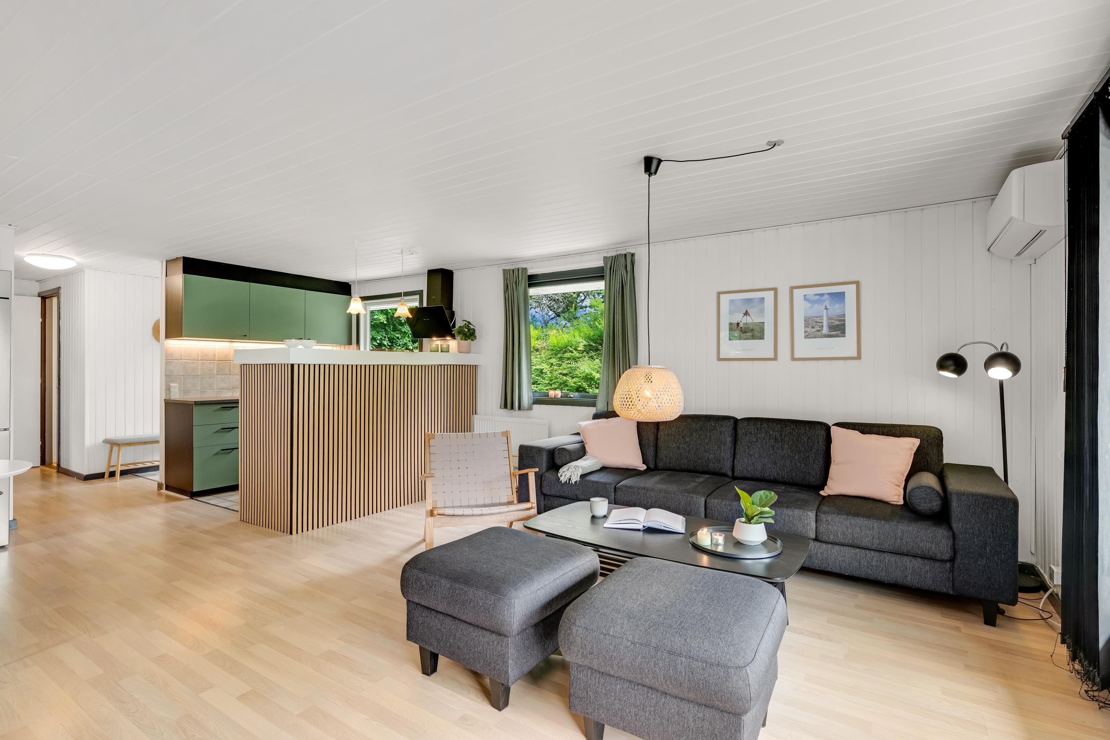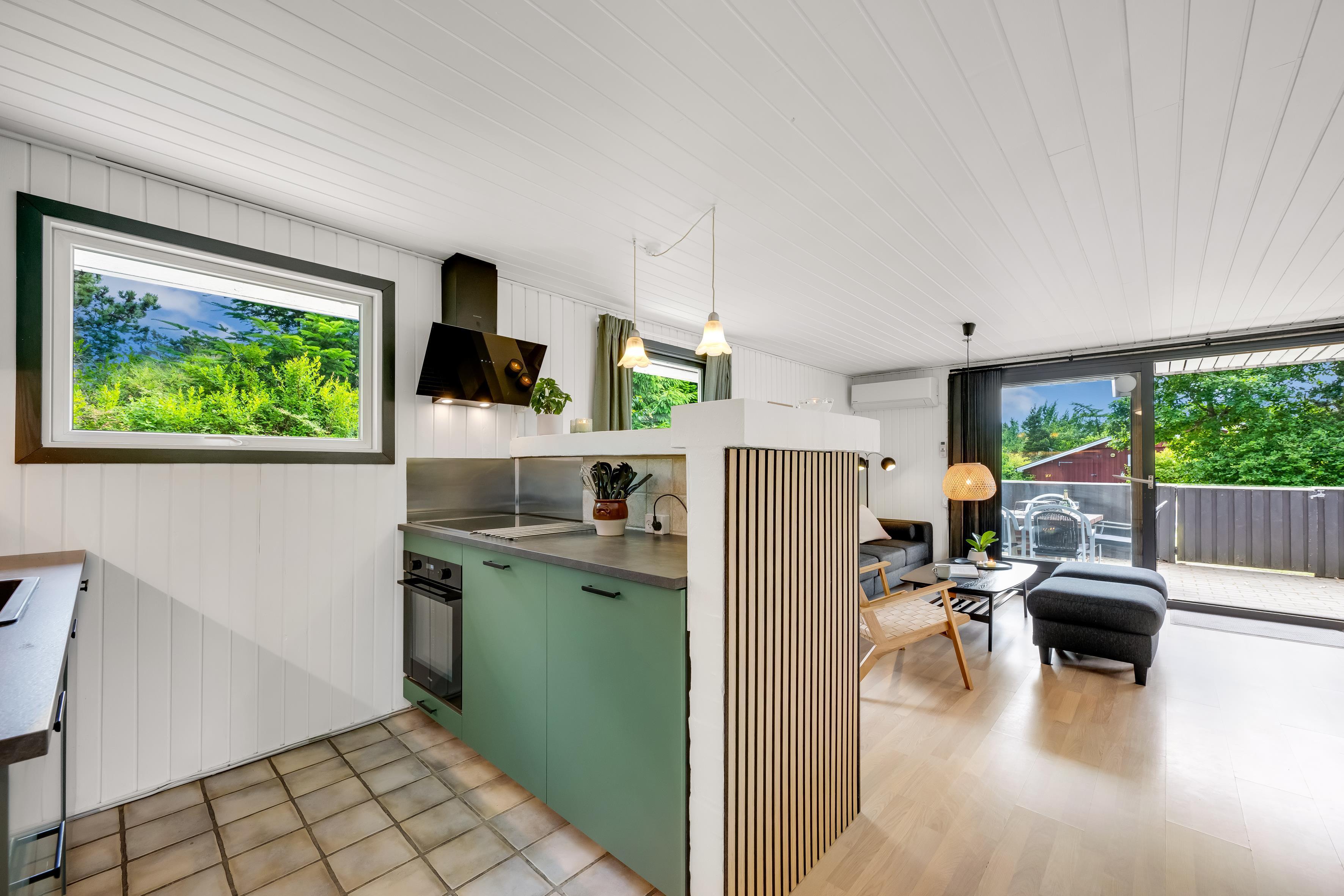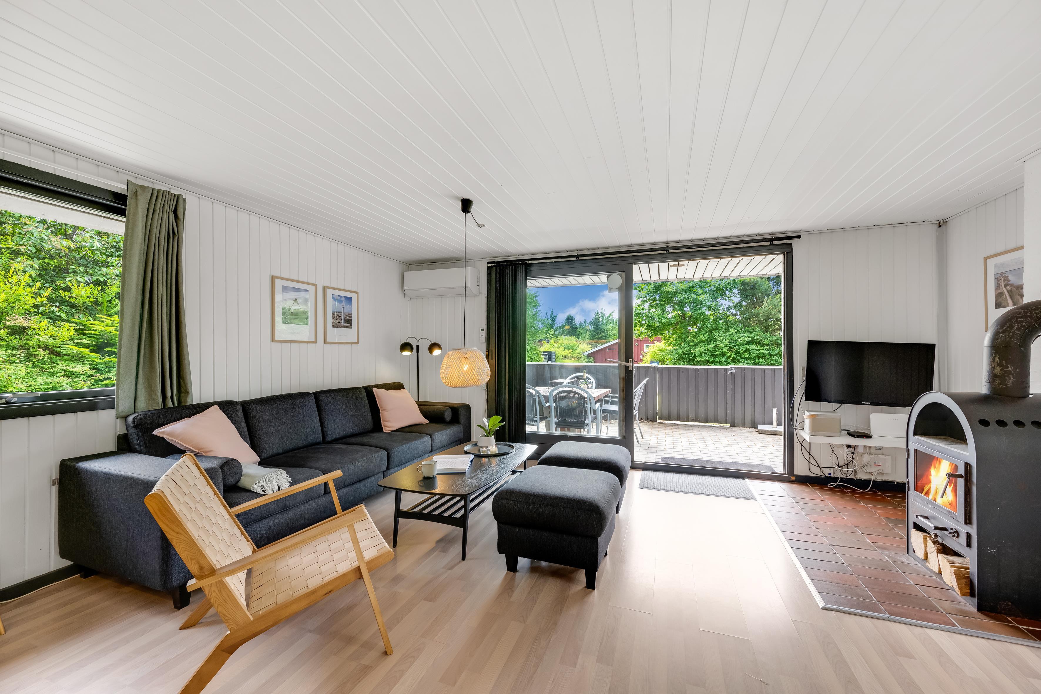 Indenfor finder du en række faciliteter, der sikrer en komfortabel oplevelse. Huset er udstyret med en varmepumpe, der også kan fungere som aircondition, så du kan justere temperaturen efter egne præferencer. I stuen er der en brændeovn, der skaber en hyggelig atmosfære på køligere dage. For underholdning er der et fjernsyn med både dansk og tysk tv, Chromecast til streaming og trådløst internet, så du kan holde forbindelsen, hvis du ønsker det.