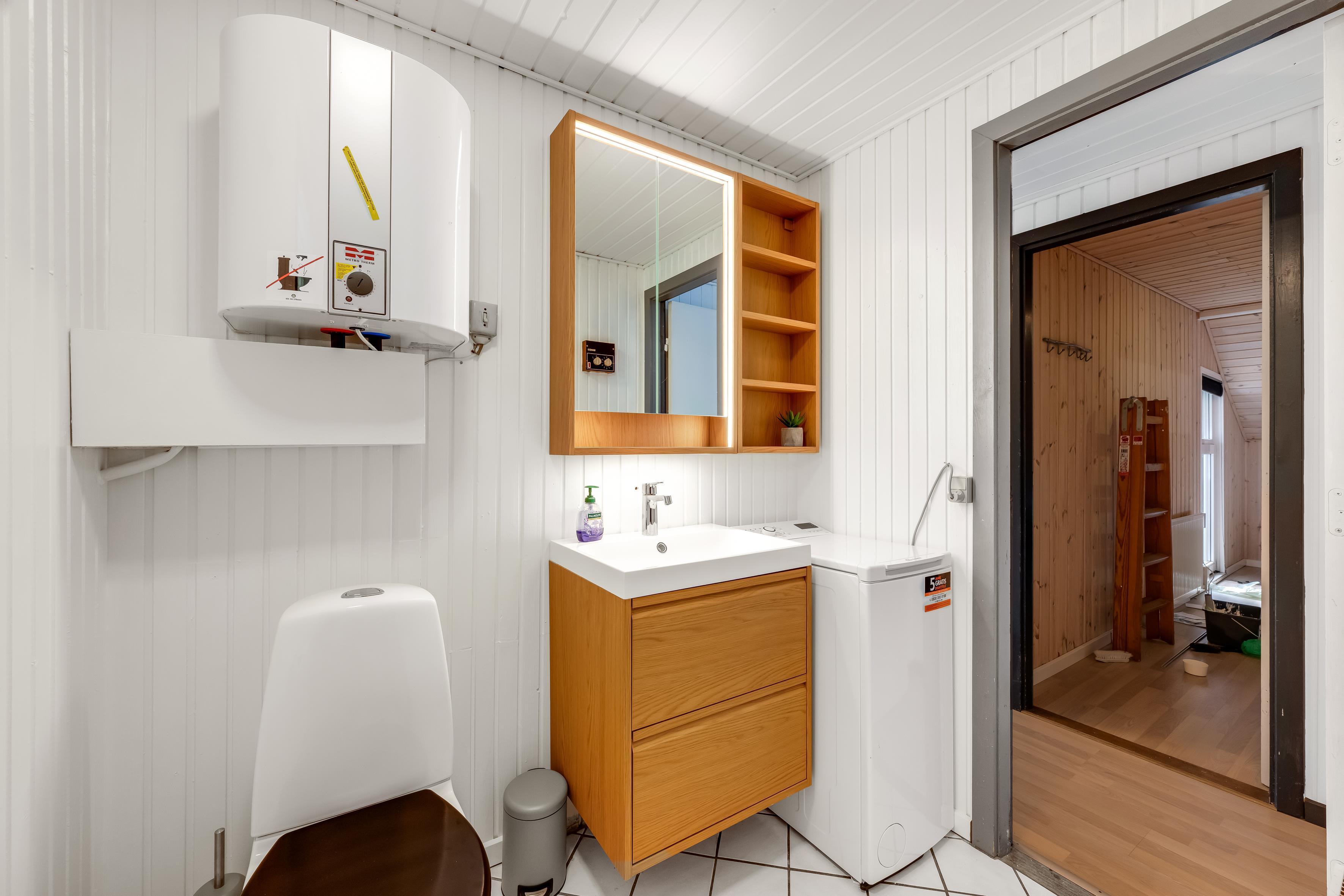 Huset har et samlet areal på 95 kvadratmeter og indeholder tre komfortable soveværelser, hver med dobbeltsenge, hvilket sikrer en god nattesøvn for alle. Der er også et fint badeværelse, der er udstyret med både bruser og toilet, så du har alt hvad du behøver for en behagelig oplevelse. I forbindelse med badeværelset finder i desuden husets sauna, hvor du kan få pulsen ned, efter en lang gåtur ved Fjorden.