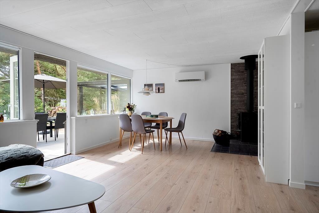 Indenfor i det charmerende og gennemrenoverede sommerhus mødes du af en varm og indbydende atmosfære. Stilen er klassisk sommerhus, hvor træ, bløde tekstiler og varme toner skaber følelsen af et fristed langt fra hverdagen. Her indbydes til kvalitetstid med familien i det åbne opholdsrum, hvor brændeovnens knitren bliver det naturlige samlingspunkt – især på kølige dage, hvor varmen breder sig i rummet og skaber en rolig stemning. Huset rummer 2 hyggelige værelser. Med lyset strømmede ind gennem vinduerne og komforten i top er det nemt at finde ferieroen her. Og selv de praktiske behov er tænkt ind med opdaterede faciliteter, der gør ferielivet bekvemt og ubesværet.