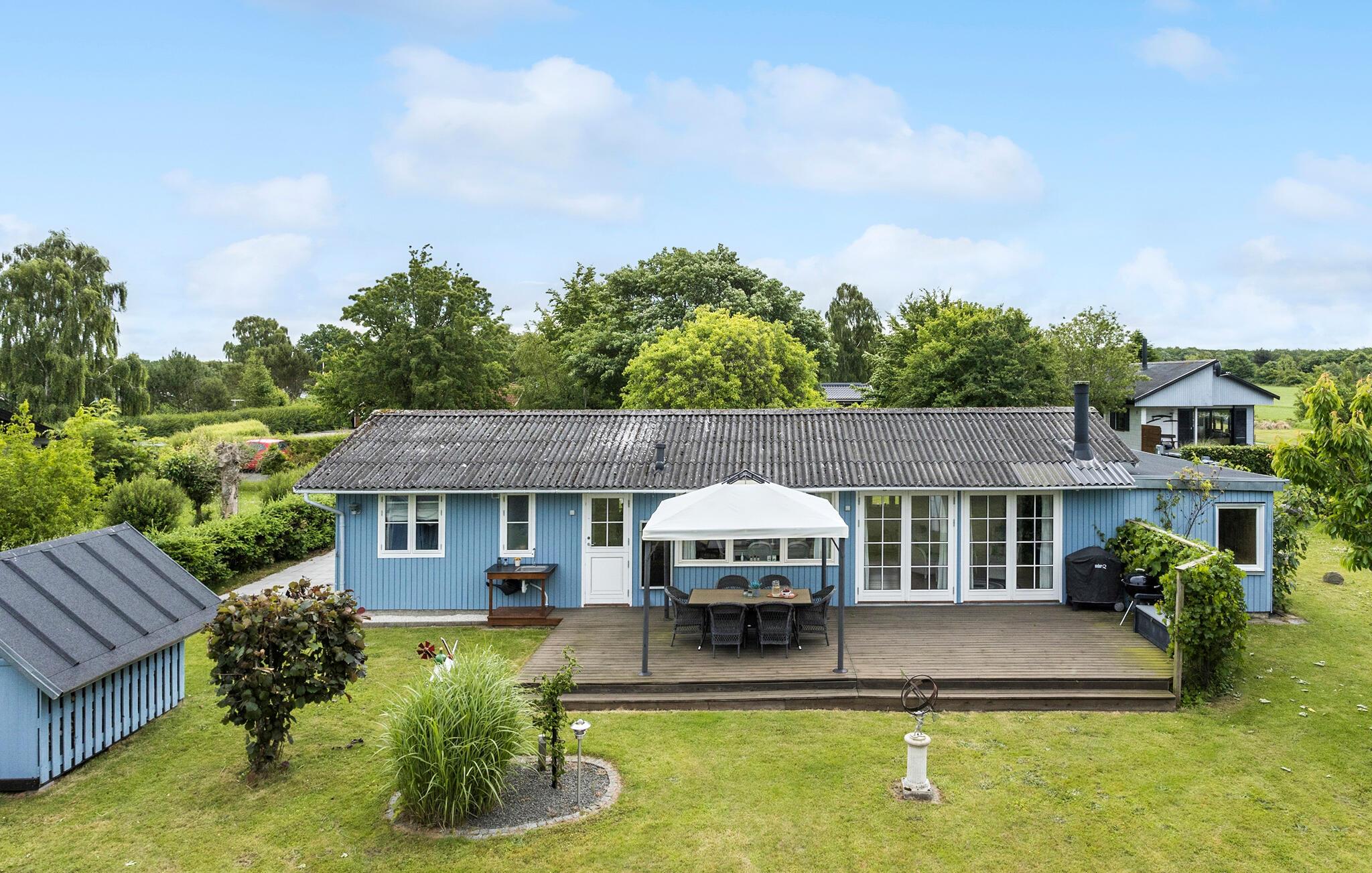 Her kommer alle ned i gear! Det hyggelige lyseblå træhus er et godt sted at komme væk fra den hektiske hverdag. Huset er indrettet med blik for de små detaljer. Lad børnene hjælpe til med at lave salat i det veludstyrede køkken. I den lille hyggekrog med hvide kurvestole kan mor og far slappe af med lidt lækkerier, når roen sænker sig. Om aftenen kan I se jeres yndlingsfilm og hygge jer sammen i sofaen. Spis morgenmad på terrassen, imens I lægger planer for den kommende dag. I den flot anlagte have kan I give mor og far pizza-massage på græsplænen. Der skal æltes, rulles og kommes fyld på! Slut dagen af med en dejlig is.