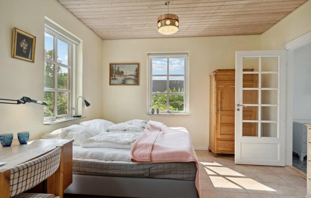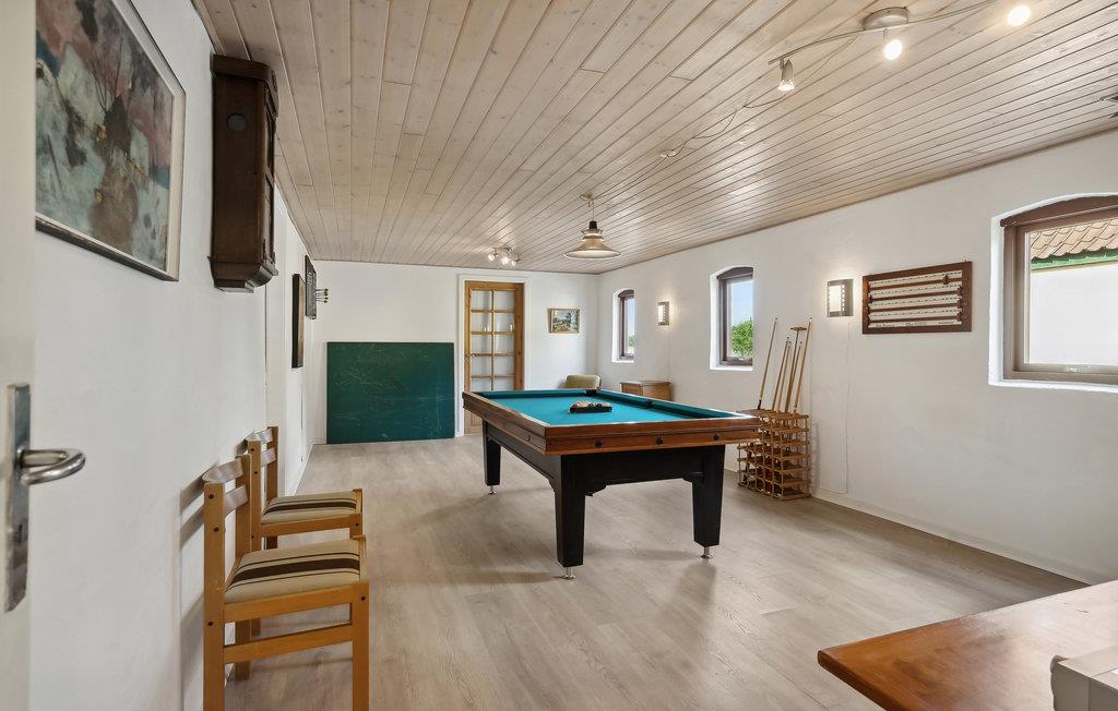 Velkommen til dette klassiske feriehus, som har en skøn udsigt over marker. Her kan hele familien komme ned i tempo og sætte hverdagen på pause. Hvis vejret ikke er med jer, kan I hygge jer indendørs og snuppe et slag bordtennisbord eller pool. I huset er der både god komfort og hyggelige indretningsløsninger i stil med husets historie. Børnene kan lege frit i den store have, mens I nyder freden og roen.