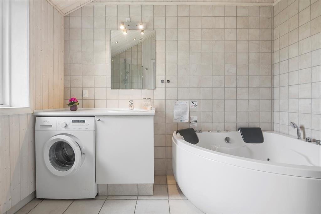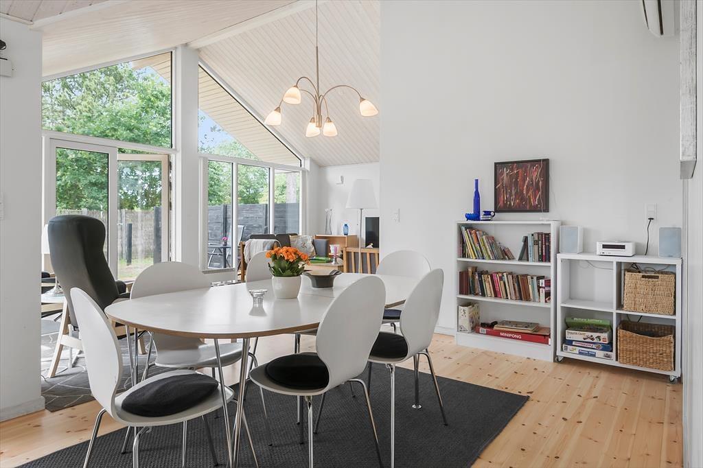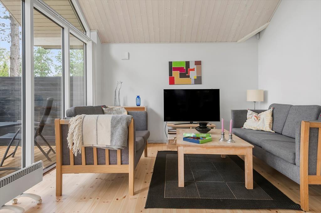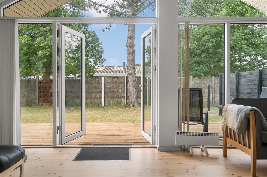 Lækkert nyere helårsisoleret feriehus med loft til kip i næsten alle rum. Feriehuset er indrettet med kombineret køkken og opholdsstue. Lyst køkken med indbygget ovn, kogeplader, opvaskemaskine, og køleskab med fryser. Dejlig lys opholdsstue med et godt lysindfald via store vinduespartier. Udgang til terrasse, god og hyggelig spiseplads, sofaer og lænestol, TV med stor Allente TV pakke, parabol med tyske kanaler, og Chromecast med adgang til streamingtjenester (kræver eget login). Badeværelse med bruseniche, spabad, vaskemaskine og gulvvarme. Gæstetoilet.Tre soveværelser, to med dobbeltsenge, og et med to enkeltsenge. Der er desuden både barneseng og barnestol til rådighed. Huset opvarmes med varmepumpe, brændeovn og elvarme.