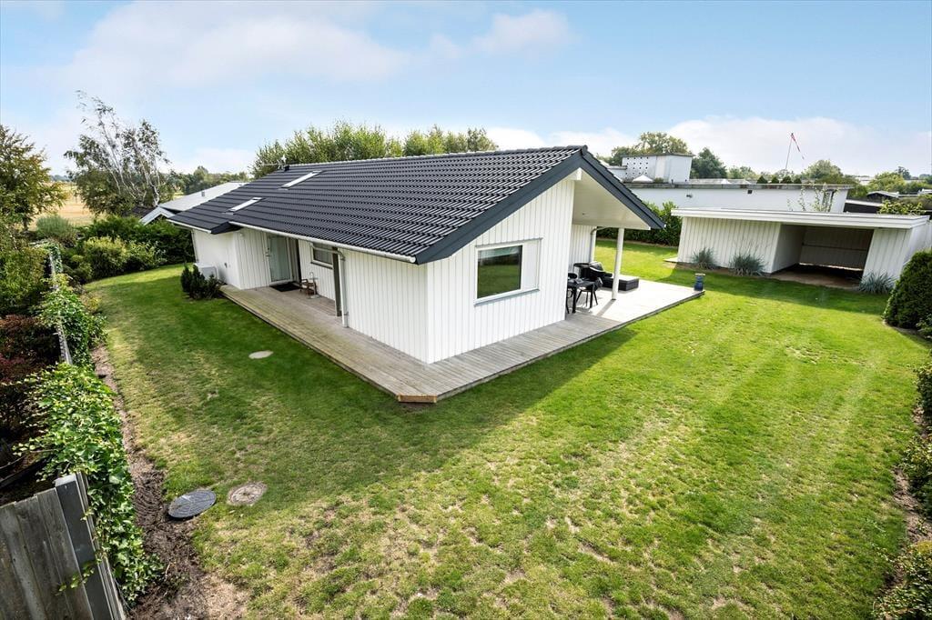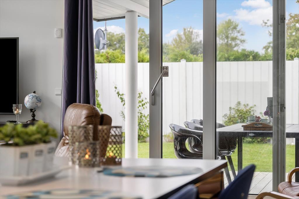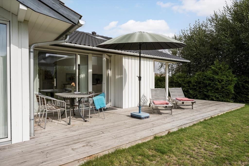 Nyd livet udenfor: Fra stuen er der flere udgange til den delvist overdækkede træterrasse. Slap af på terrassen eller tag en lille lur på solsengen i den friske luft. Huset er nemlig placeret på dejlig afskærmet og ugeneret grund, beliggende for enden af en lukket vej. I haven er der rig mulighed for aktiviteter og leg for børnene. Udendørs er der god mulighed for at grille under åben himmel eller bare nyde den afslappende atmosfære og naturen omkring.