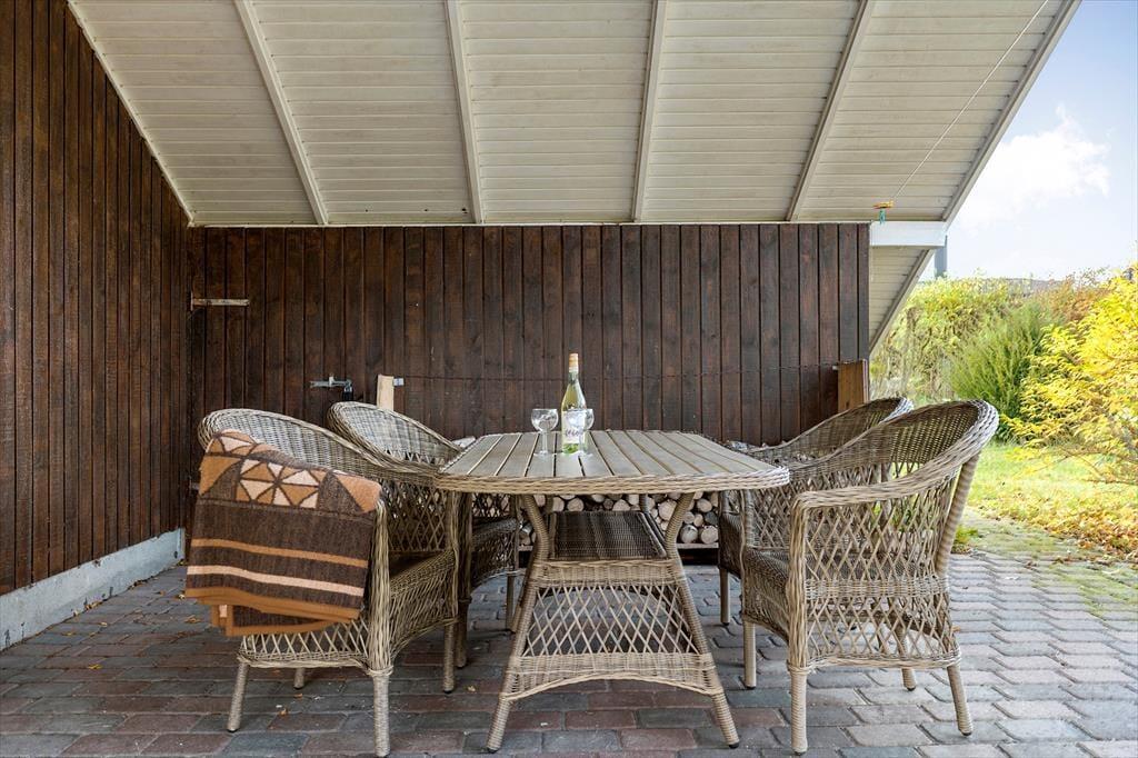 Nyd livet udenfor: I haven er der rig mulighed for leg og aktiviteter for børnene, da der er en fin græsplæne med stor trampolin og sandkasse, mens der rundt om huset er flere terrasser, hvor du kan nyde solen, slappe af eller samles om havebordet til en dejlig grillmiddag. Ved indgangsdøren er terrasseområdet delvist overdækket, så her er der god mulighed for at nyde en kop kaffe om morgenen. Nyd naturen og udsigten til de åbne marker og landskabet omkring. Huset er placeret kun 500 meter fra den fine sandstrand, så tag en frisk aftendukkert og find derefter varmen ved havens bålfad.
