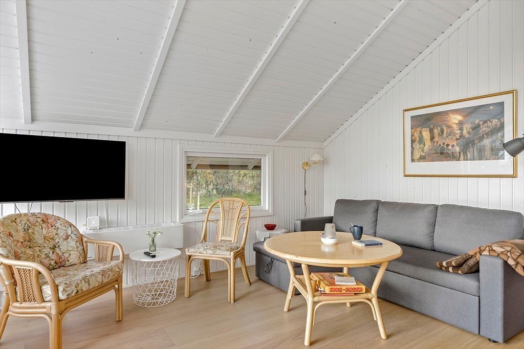 Velkommen indenfor: Dette charmerende feriehus byder på et åbent køkken-alrum med hyggelig stue. Køkkenet er rummeligt og ideelt til fælles madlavning og afslapning, perfekt for hele familien. Der er to soveværelser inde i huset, det ene med køjeseng til børnene og et andet soverum med dobbeltseng samt en komfortabel sovesofa i stuen. Desuden et anneks med to sovepladser. Fra stuen er der udgang til haven og terrassen. Badeværelset er rummeligt og udstyret med bruseniche og god skabsplads.