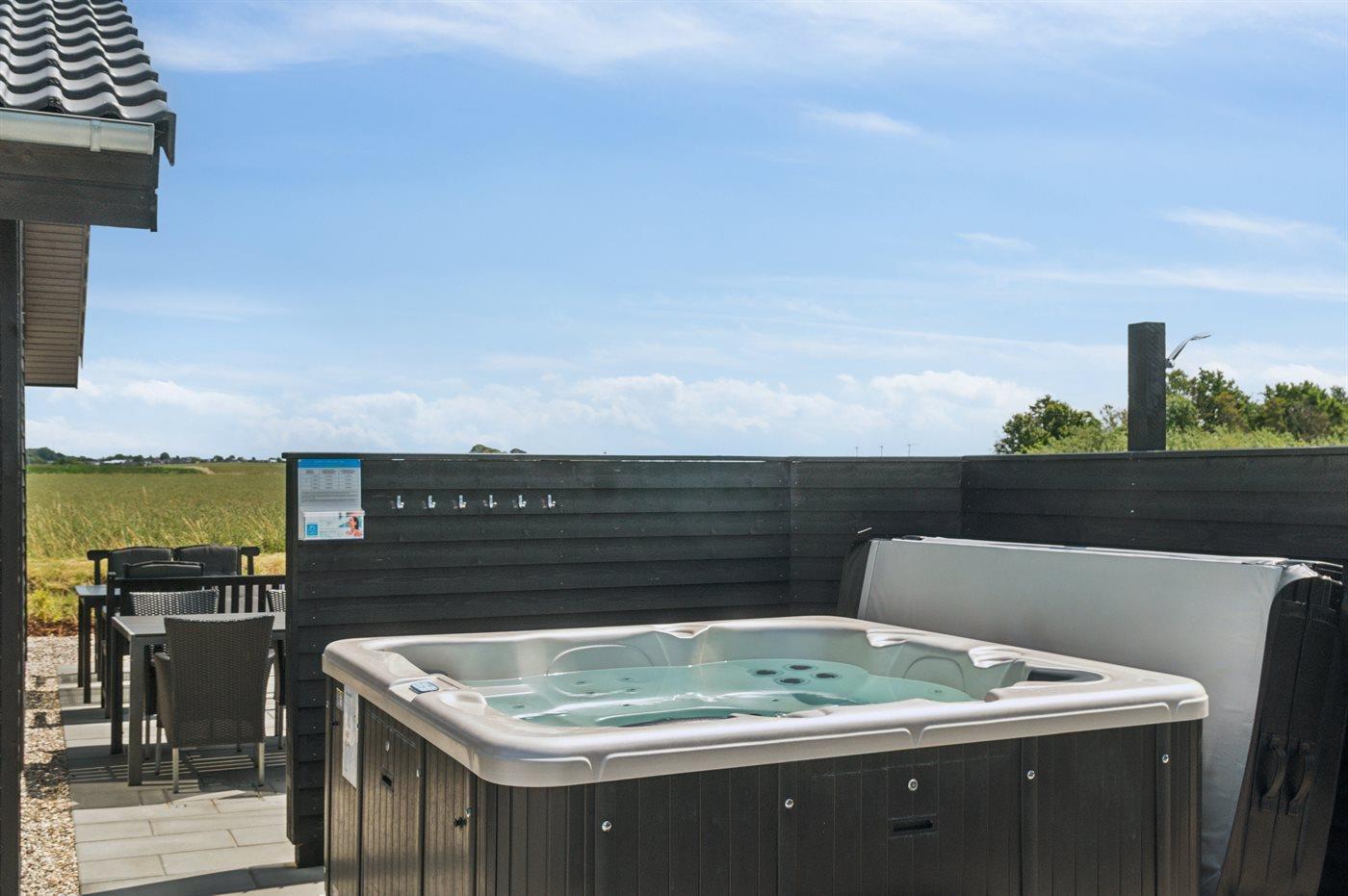 Der er mulighed for afslapning i udendørs standvandsspa til 6 personer.