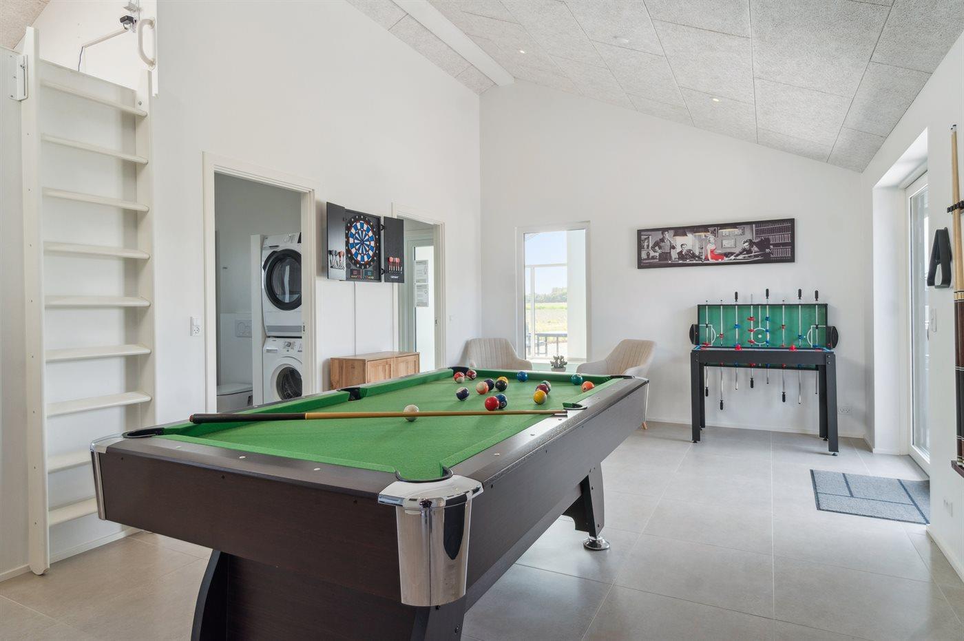 Huset byder på masser af luksus for 12 personer og på masser af aktiviteter for en underholdende og sjov ferie med venner og familie. Den indendørs swimmingpool er garanti for vandplaskeri og sjov, og med modstrømsanlæg er det også muligt at svømmetræne og konkurrere mod de øvrige badende. I kombination med den udendørs spa til 6 personer, udendørs sauna og udebruser er dette hus ideelt for vandhunde. Fra spaen og sauna er der udsigt over de tilstødende marker.