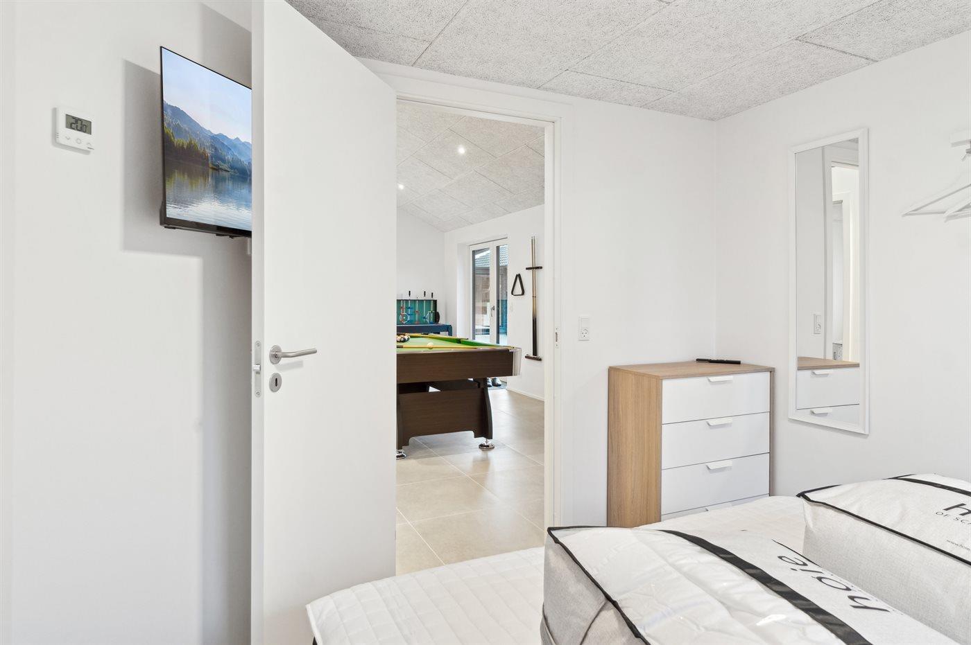 Der er 5 soveværelser med hver 2 sovepladser samt en stor hems med yderligere 2 sovepladser. Der er 3 badeværelser med bruseniche og gulvvarme. Der er vaskemaskine og tørretumbler.