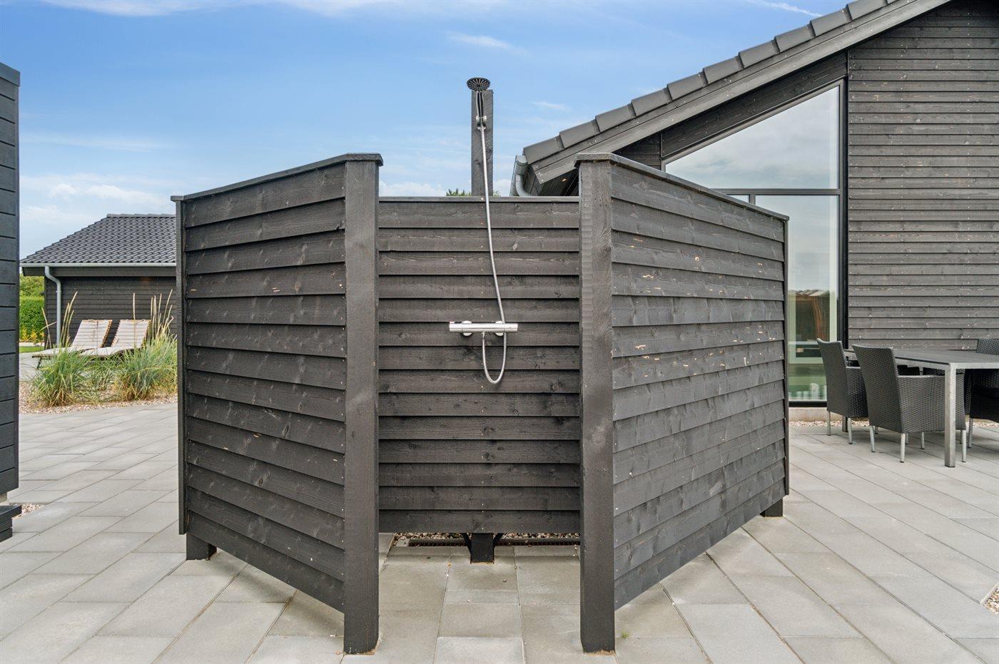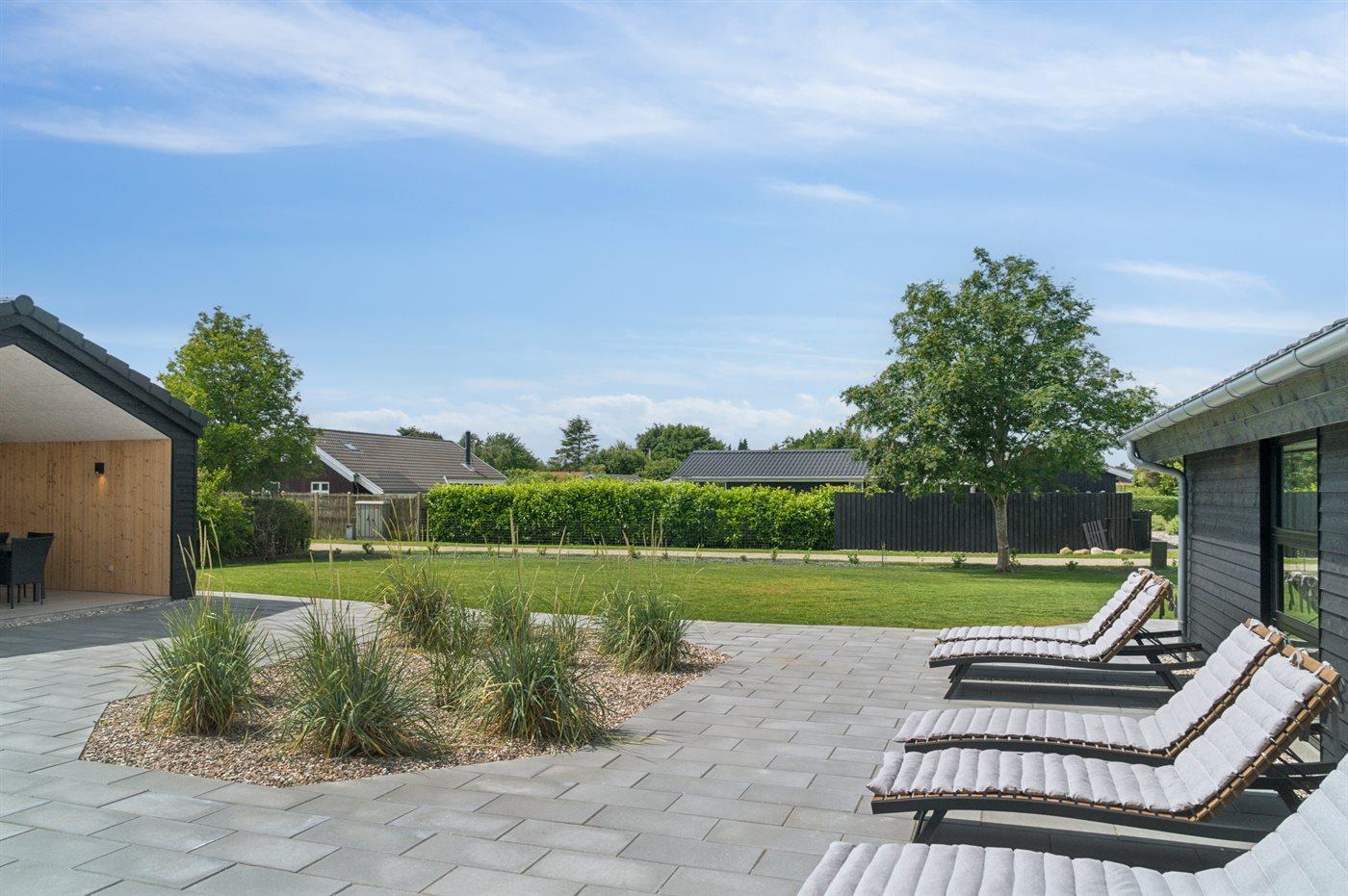 Ferieboligen er beliggende på en 1329 m² stor havegrund. Der er 600 m til havet. Nærmeste forretning er beliggende i en afstand af 650 m. Der er en golfbane i en afstand af 12000 m. Til ferieboligen hører 125 m² terrasseareal. Desuden er der 27 m² overdækket terrasse. Gynge. Sandkasse. Legetårn. Rutchebane. Petanque. Bålsted. Shelter. Udendørs sauna. Udendørs bruser. Grill til rådighed. Der er installeret stik til opladning af elbil. Type 2 stik. Med 11 kW ladeeffekt. Parkering ved ferieboligen.