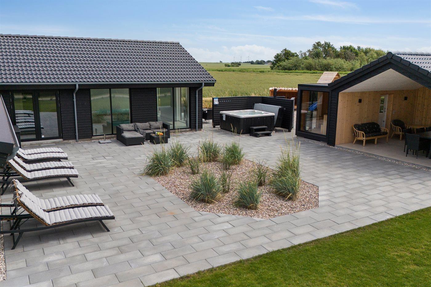 På det store terrasseområde er der rig mulighed for at nyde solen og det gode vejr. Ud på aftenen og på de lidt køligere dage kan man søge ind under det overdækkede terrasseområde. Maden kan også tilberedes ude på grill.