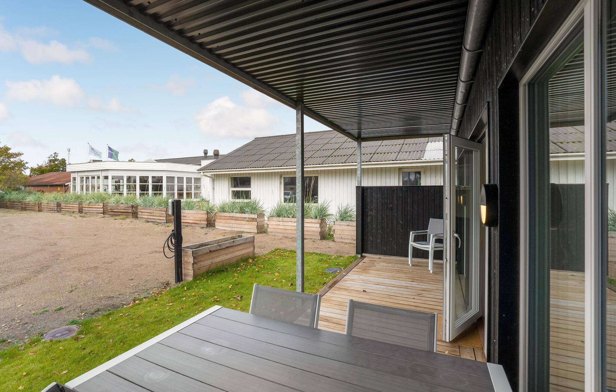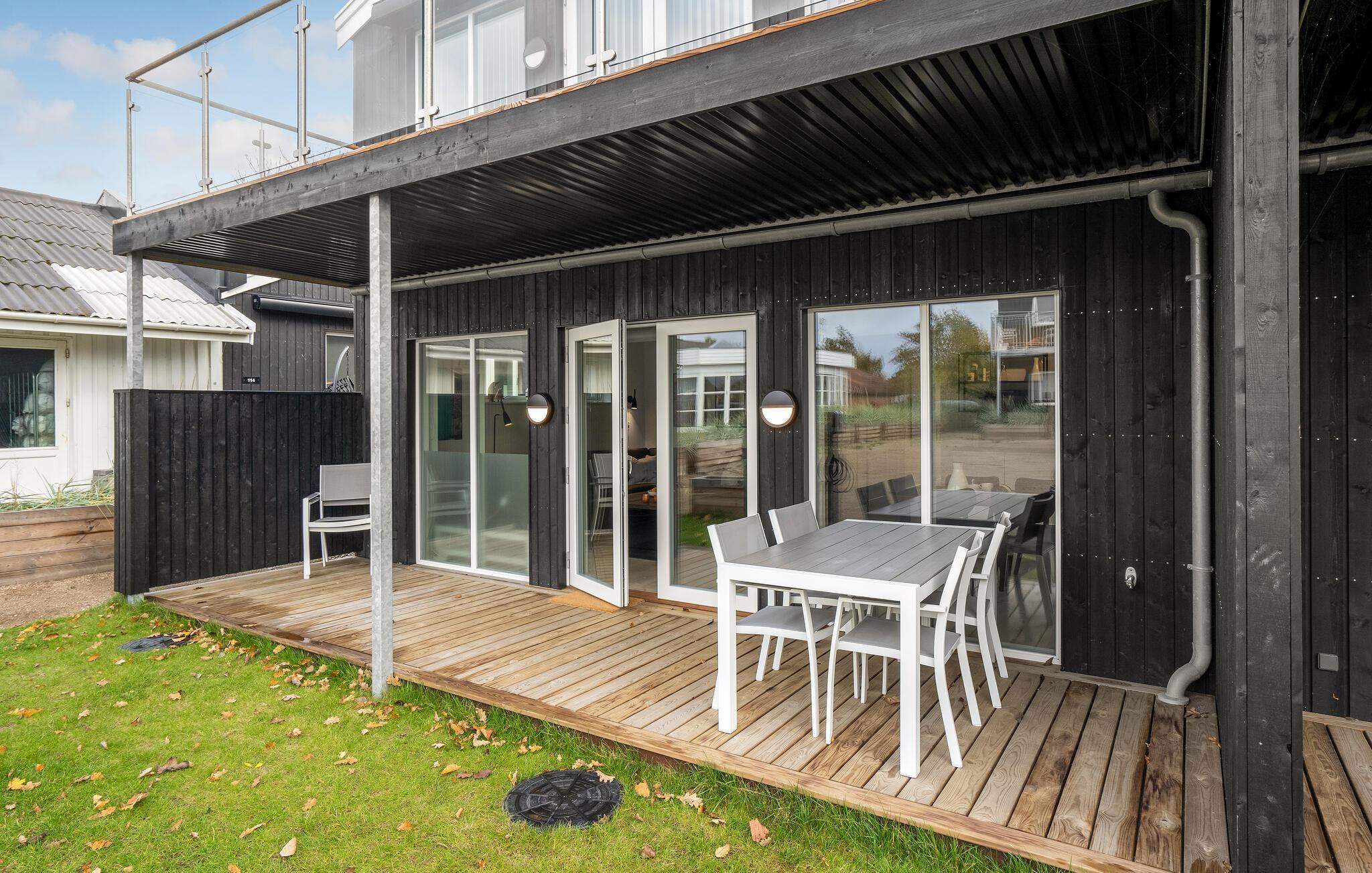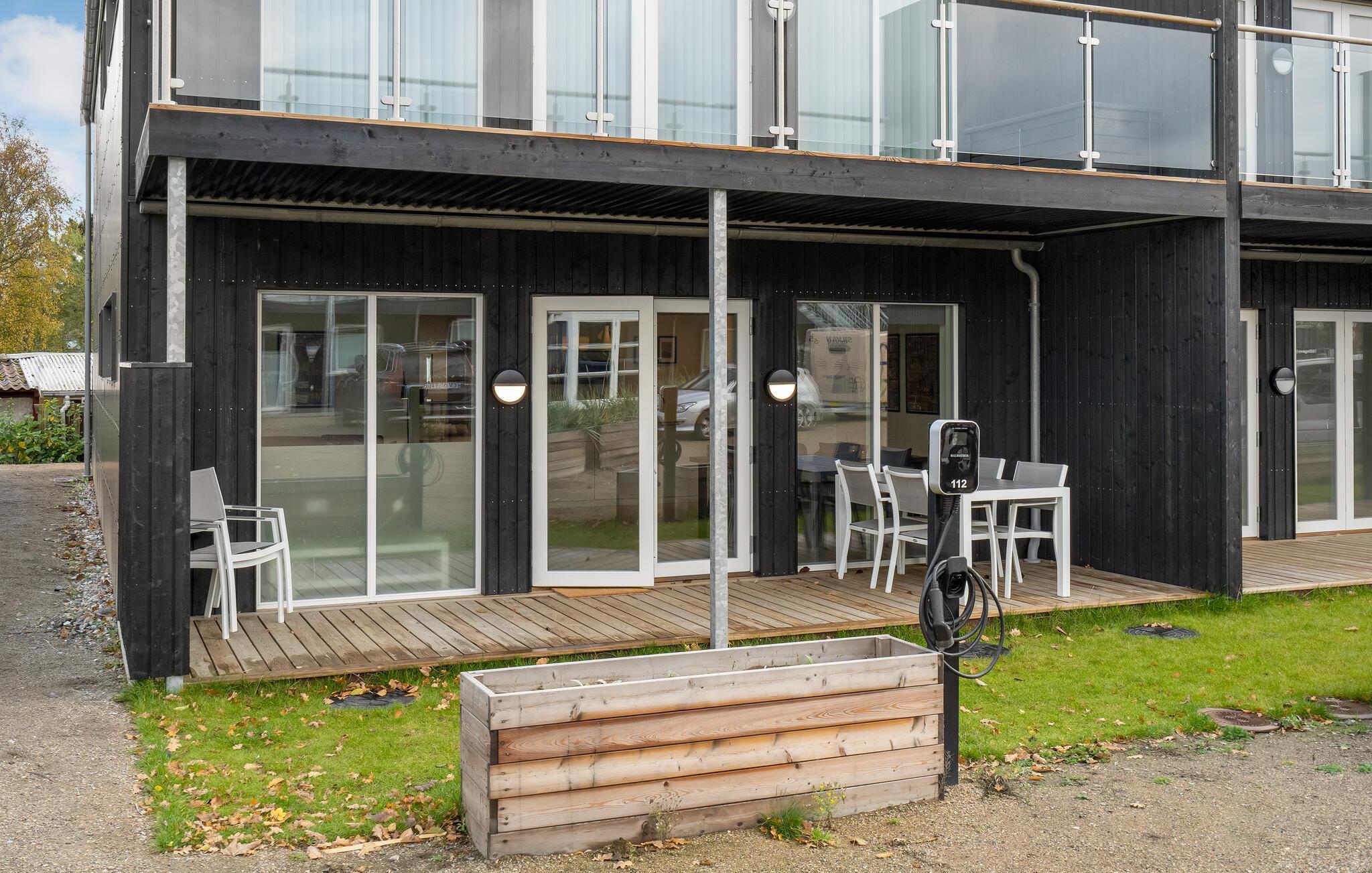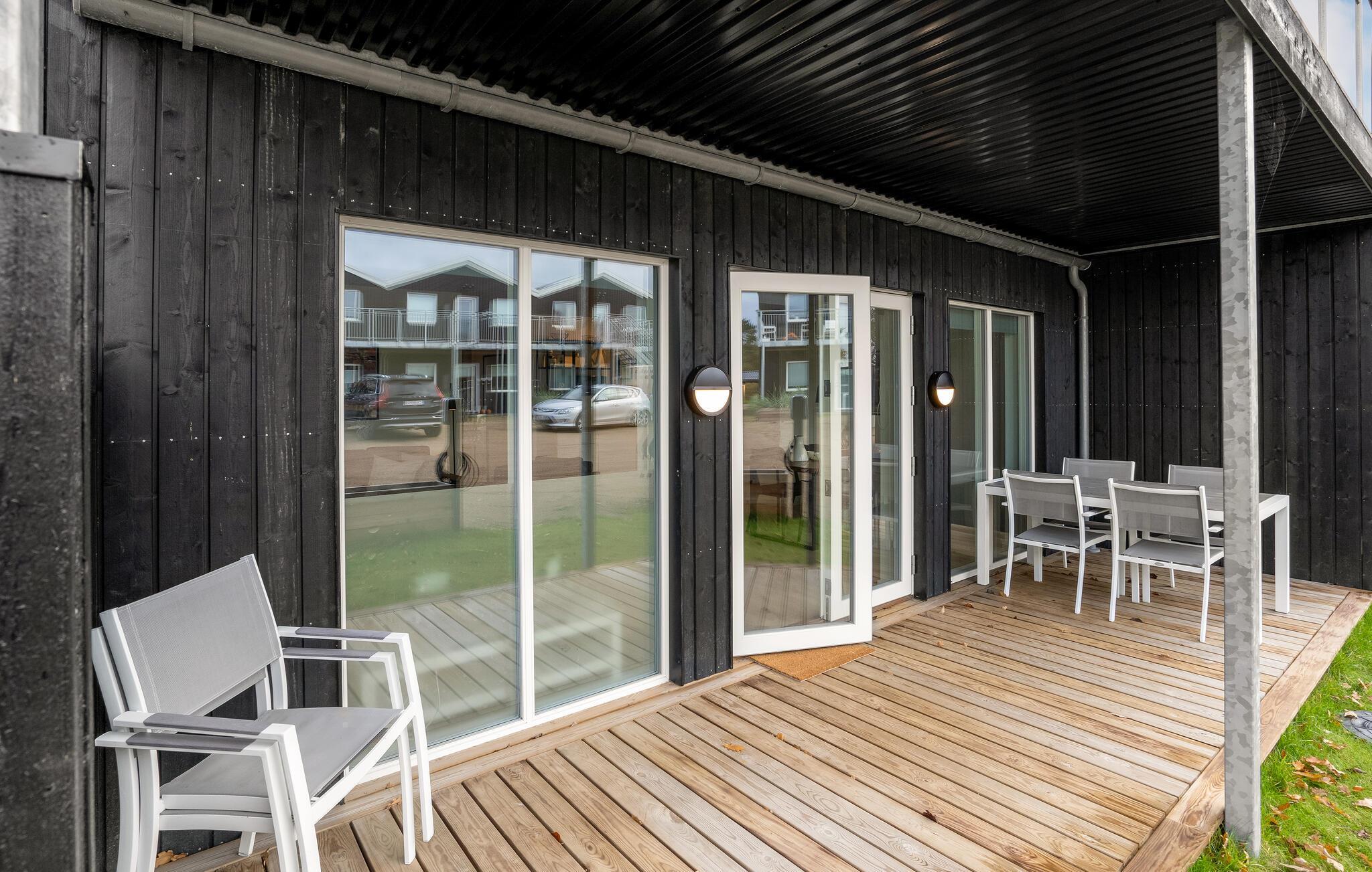 Moderne ferielejlighed i stueetagen tæt på Stillinge Strand og med overdækket terrasse.
