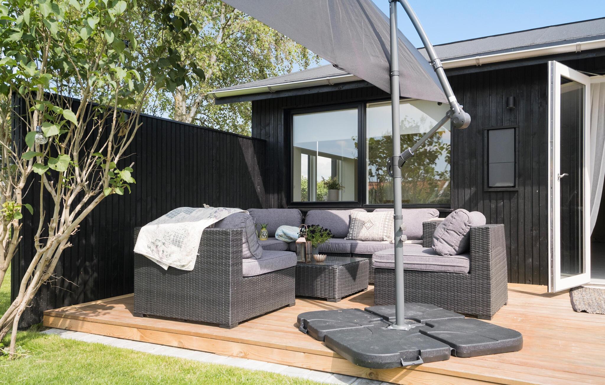 Charmerende feriehus nær Stillinge Strand med stor have og terrasse til afslapning.