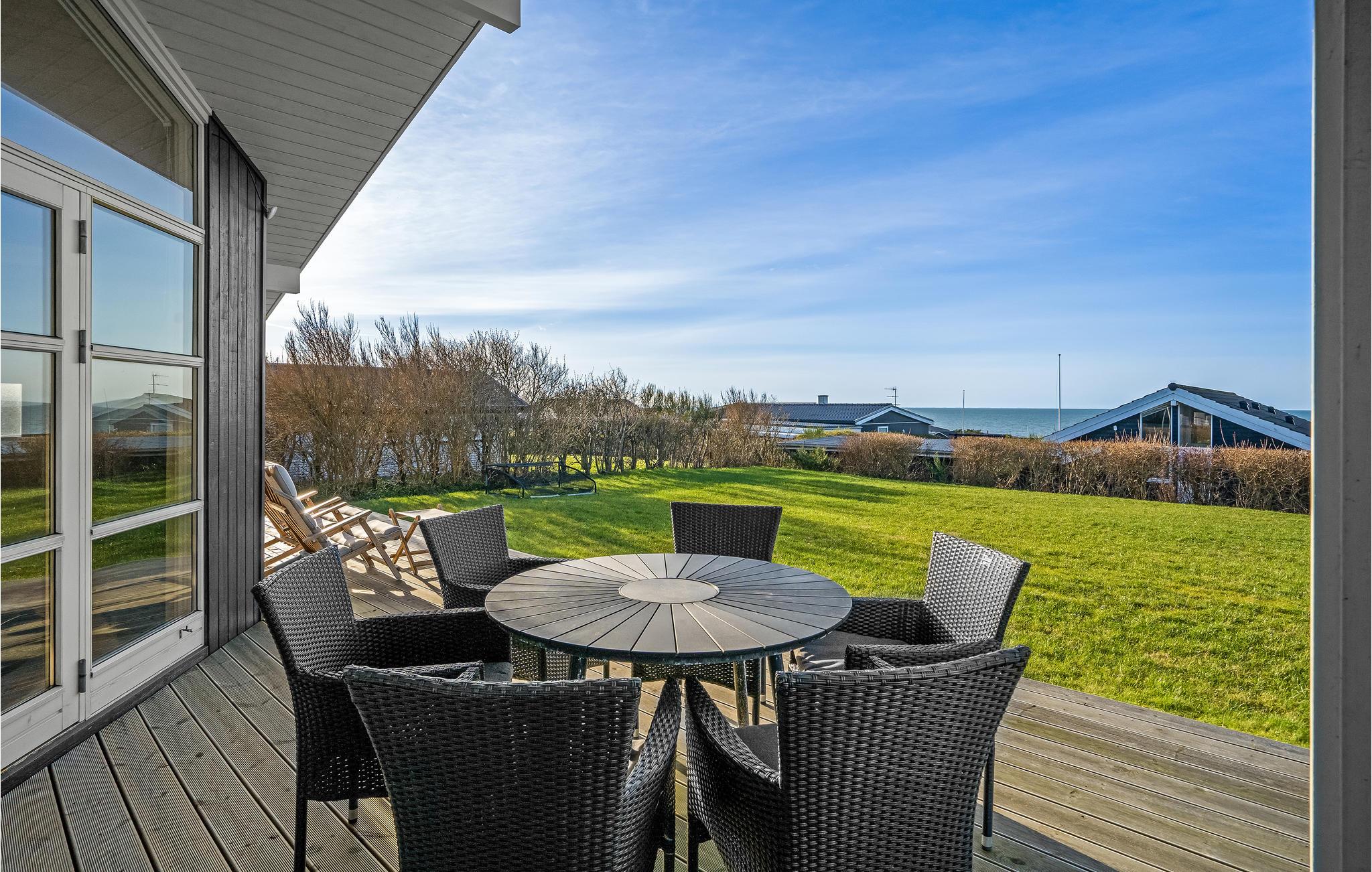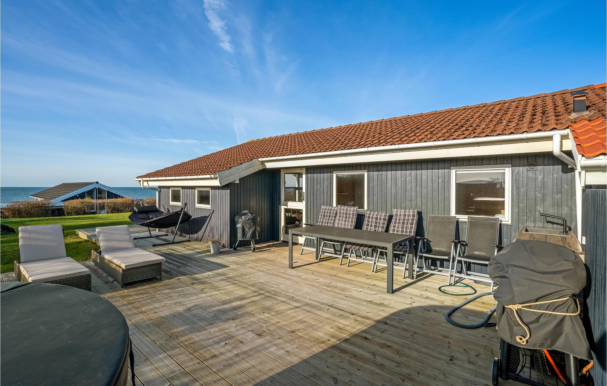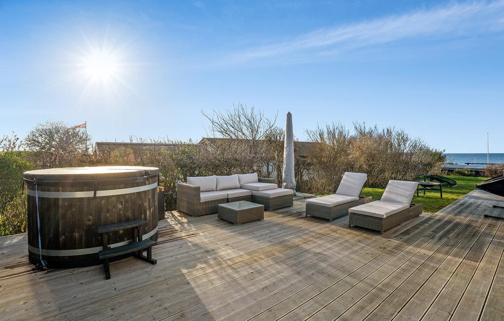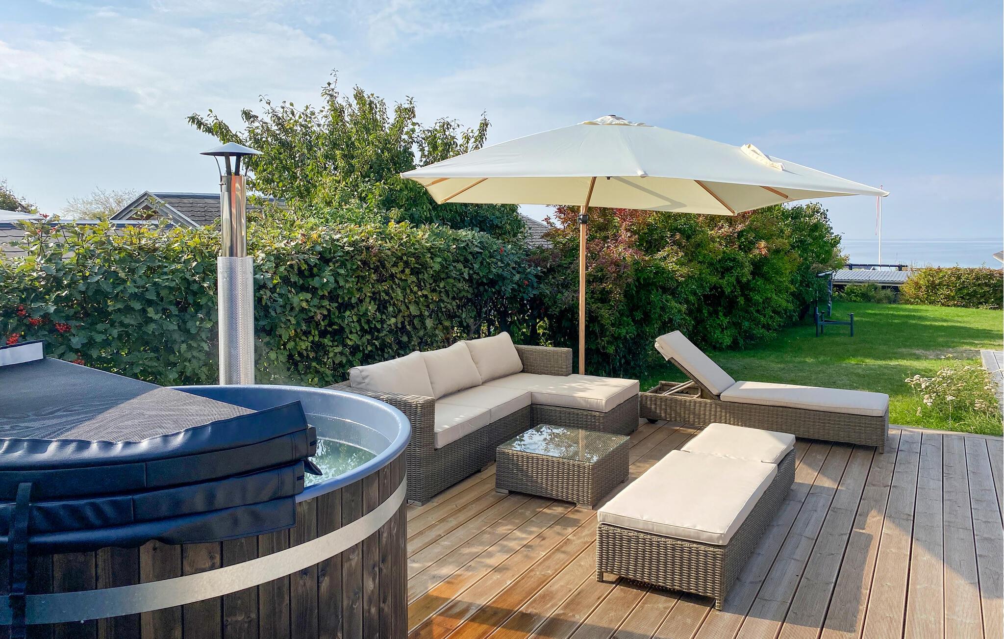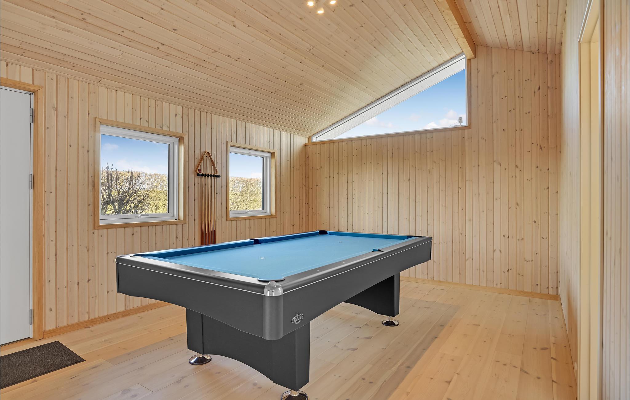 Leder I efter et stort sommerhus for hele familien, hvor leg, sjov og afslapning er i højsædet? Så er I kommet til det rette sted. Det skønne hus kan rumme jer og jeres store familie og giver jer hyggelige rammer, hvor I kan strække jer ud i sofaen, se en god film eller spille brætspil ved spisebordet. For yderligere underholdning er der et aktivitetsrum med poolbord. Hvis I længes efter mere afslapning, skal I blot gå udenfor, hvor I finder en rummelig terrasse, hvor I ikke kun kan solbade, men også slappe af i vildmarksbadet med udsigt over havet. Om aftenen kan I grille her og slappe af med en kølig drink i loungemøblerne. Både her og fra stuen får I den mest magiske placering til en smuk solnegang om aftenen.