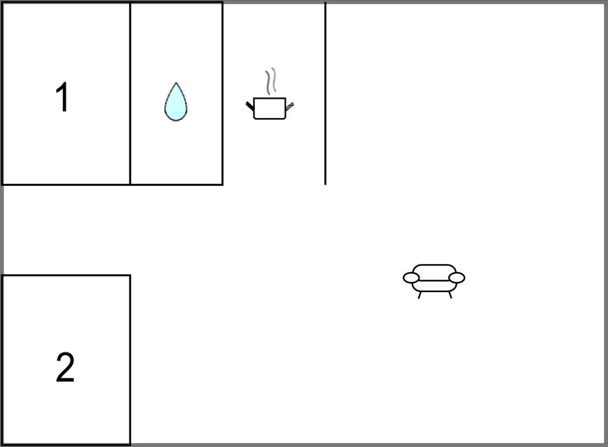 Køkkenet har v/k vand