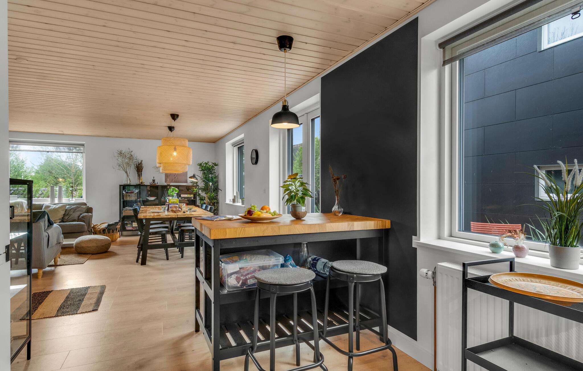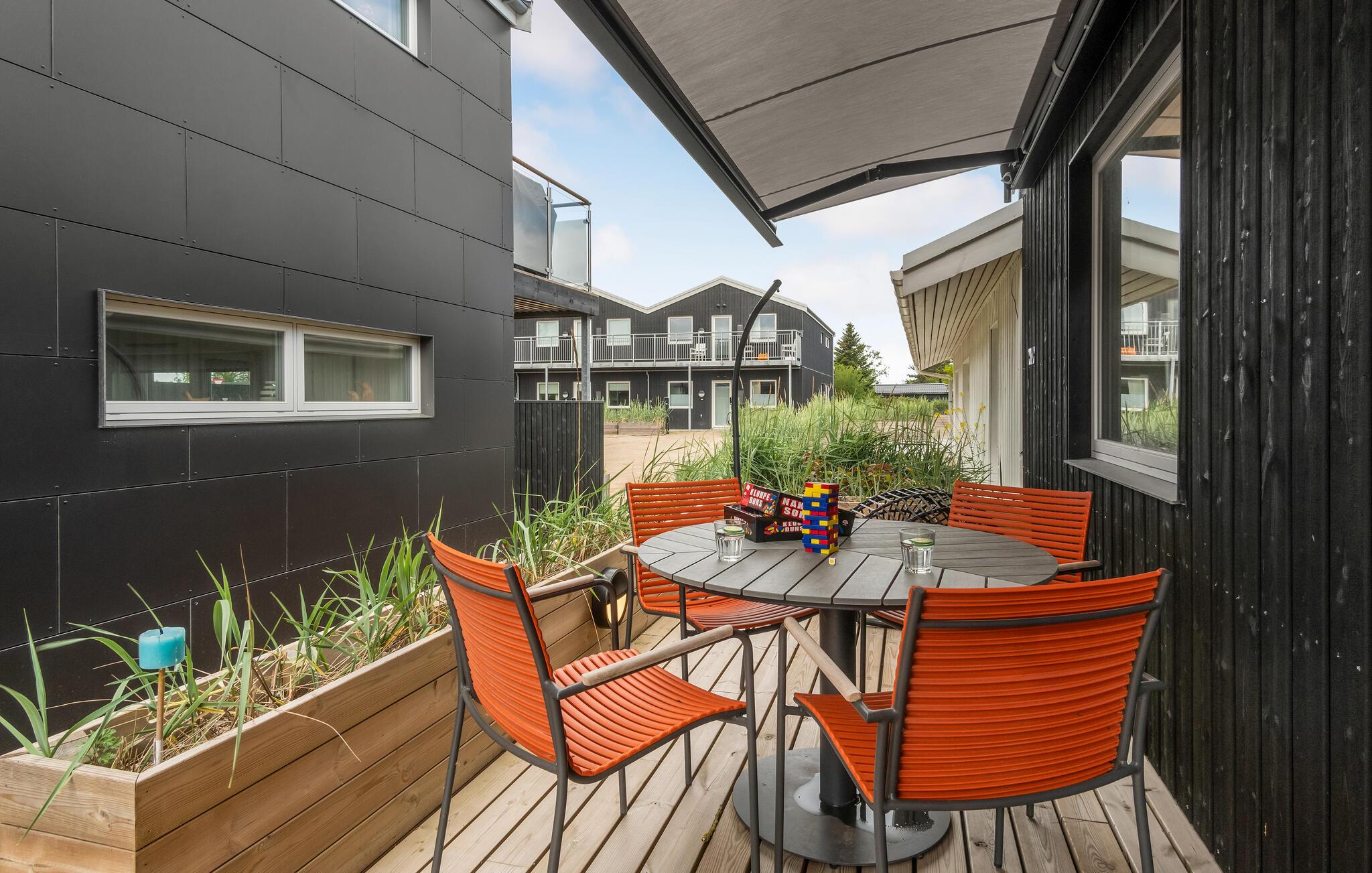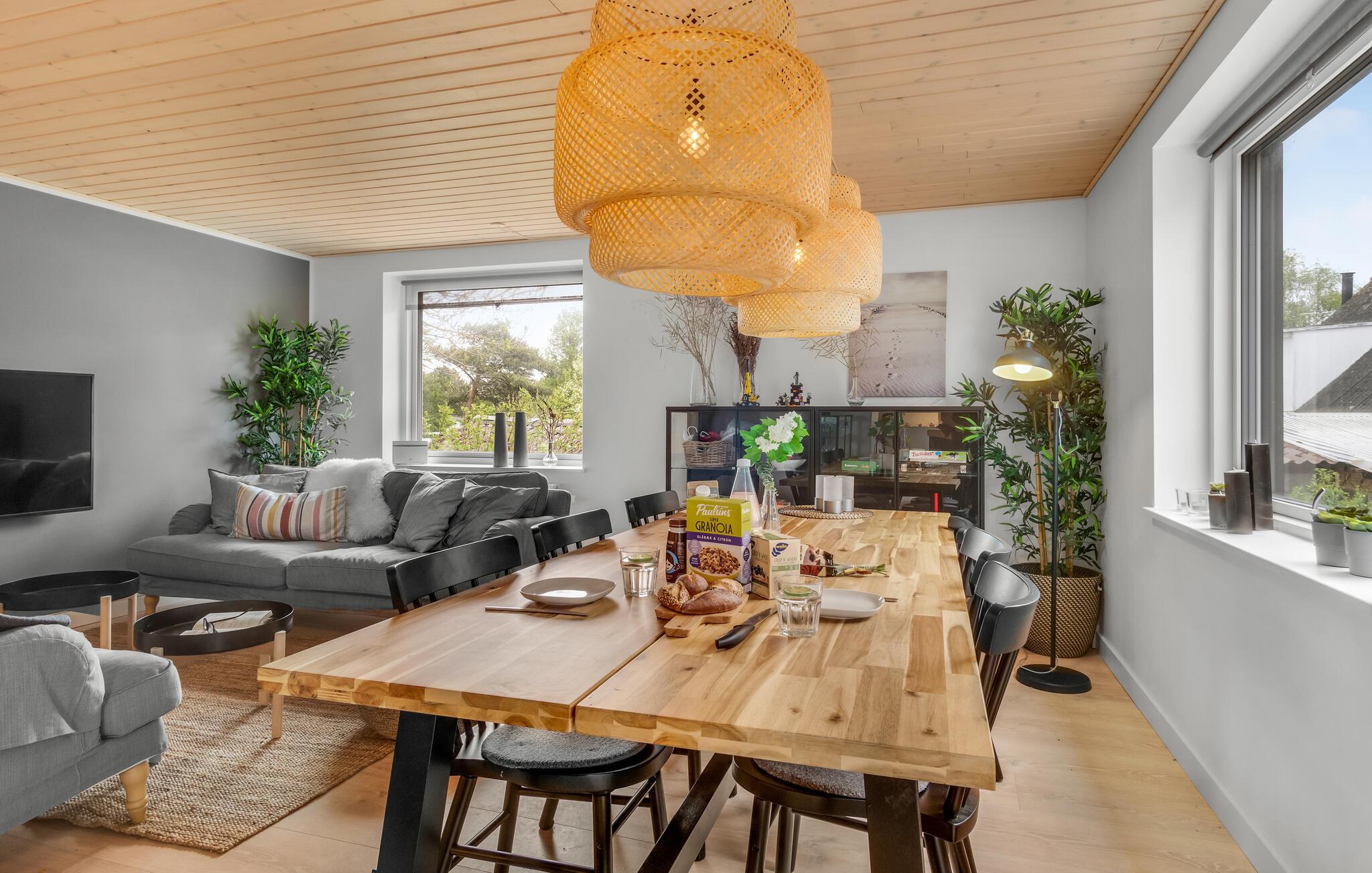 Tilbring en uforglemmelig ferie med jeres store familie eller venner i dette indbydende hus. Den smagfulde indretning og farvespillet skaber en varm, komfortabel atmosfære og en følelse af ro. Nyd en lang morgenmad ved spisebordet, sjove filmaftener med snacks og spillehygge med hele familien. I kan også drikke en kop morgenkaffe udenfor. Har I brug for skygge i løbet af dagen, kan I sætte jer godt til rette med kølige forfriskninger under markisen. Gå til sandstranden og nyd herlig familietid i solen. Her kan I lege med jeres børn i sandet, flyve med drager eller hoppe i vandet og senere beundre den smukke solnedgang.