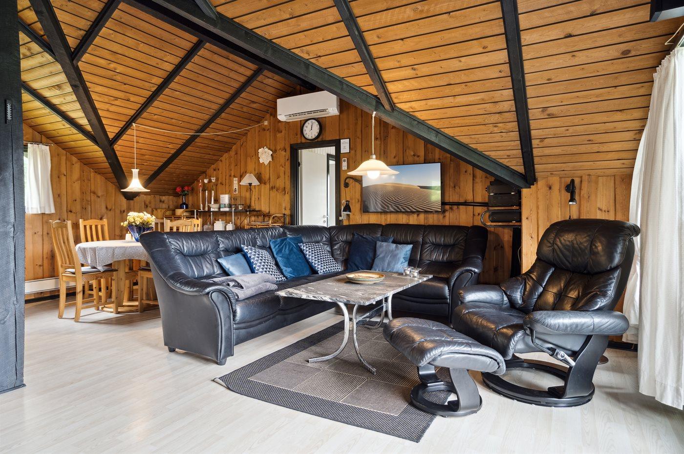 Hyggeligt sommerhus beliggende på en skøn grund med stor græsplæne lige ved vandet. Fra såvel de skønne terrassearealer samt fra de store vinduespartier i opholdsstuen er der kig til havet.