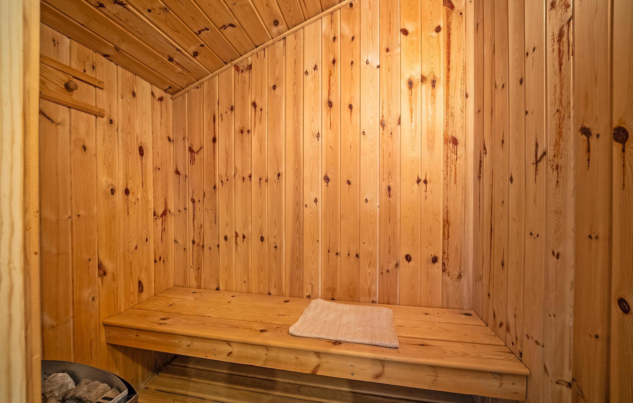 Hyggeligt træhus med sauna, spabad og stor terrasse nær havet på Langeland.