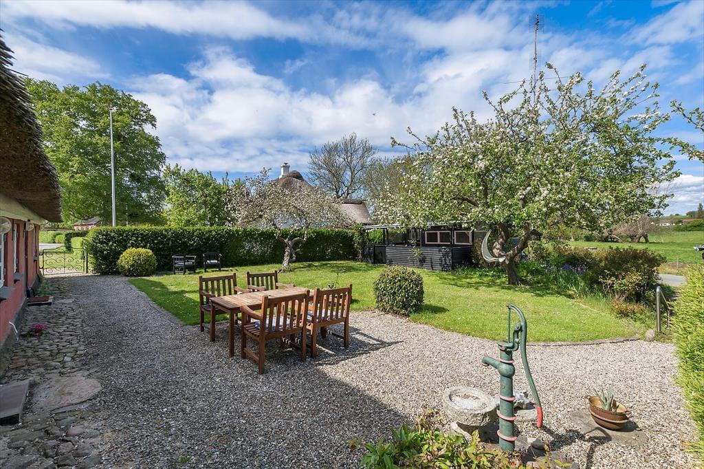 Træd ind i dette smukke landsbyhus, der oser af ægte ærøsk charme. Med et traditionelt stråtag og højt til loftet stråler dette hjem af historie og moderne komfort. Det åbne køkken og spisepladsen er hjertet i huset, hvor I kan nyde feriens måltider sammen. Et lyst badeværelse med vaskemaskine tilføjer praktiske bekvemmeligheder, mens den rummelige tv-stue med brændeovn indbyder til afslapning og hygge.