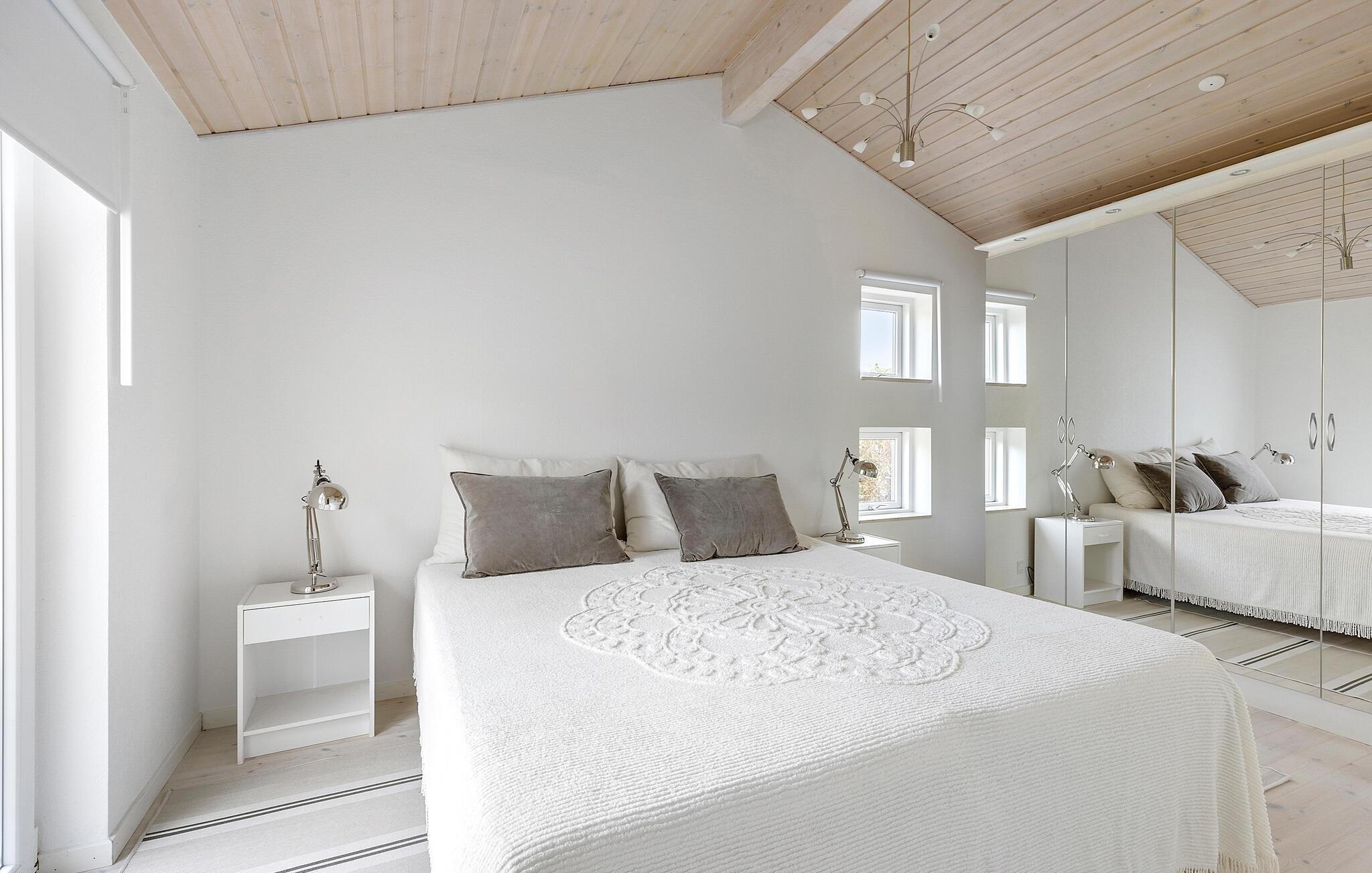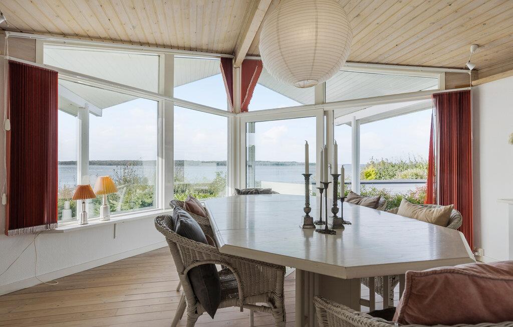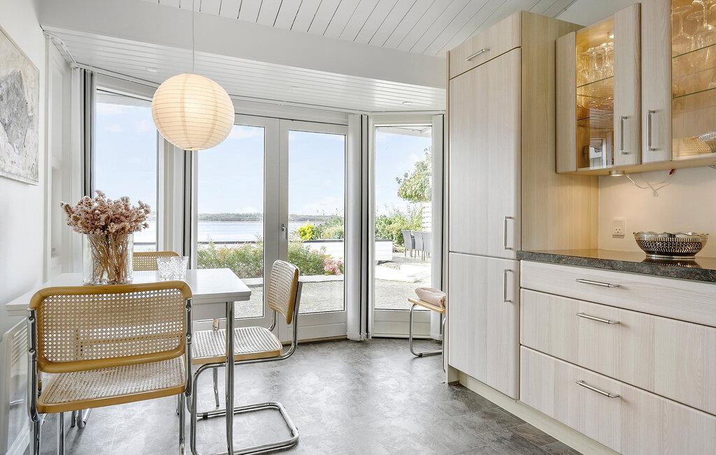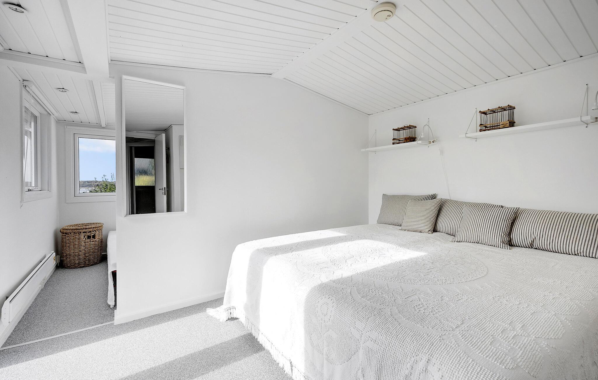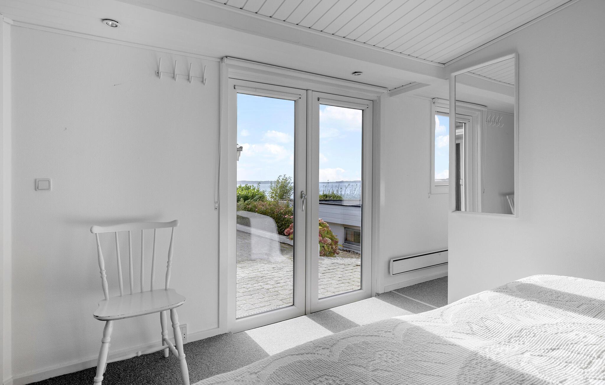 Dette feriehus imponerer ikke kun med sin smukke udsigt, men også med sine stilfulde og attraktive møbler. I stuen kan I nyde varmen fra pejsen på kølige dage eller spise sammen i den smukke spiseplads med udsigt over vandet. De to soveværelser er begge indrettet med dobbeltsenge.