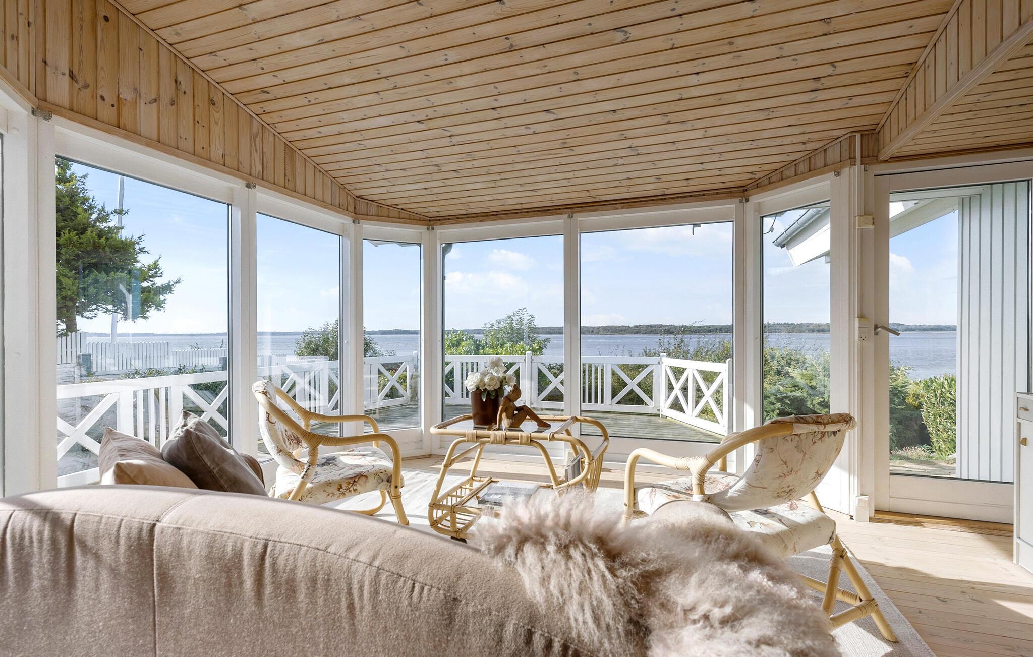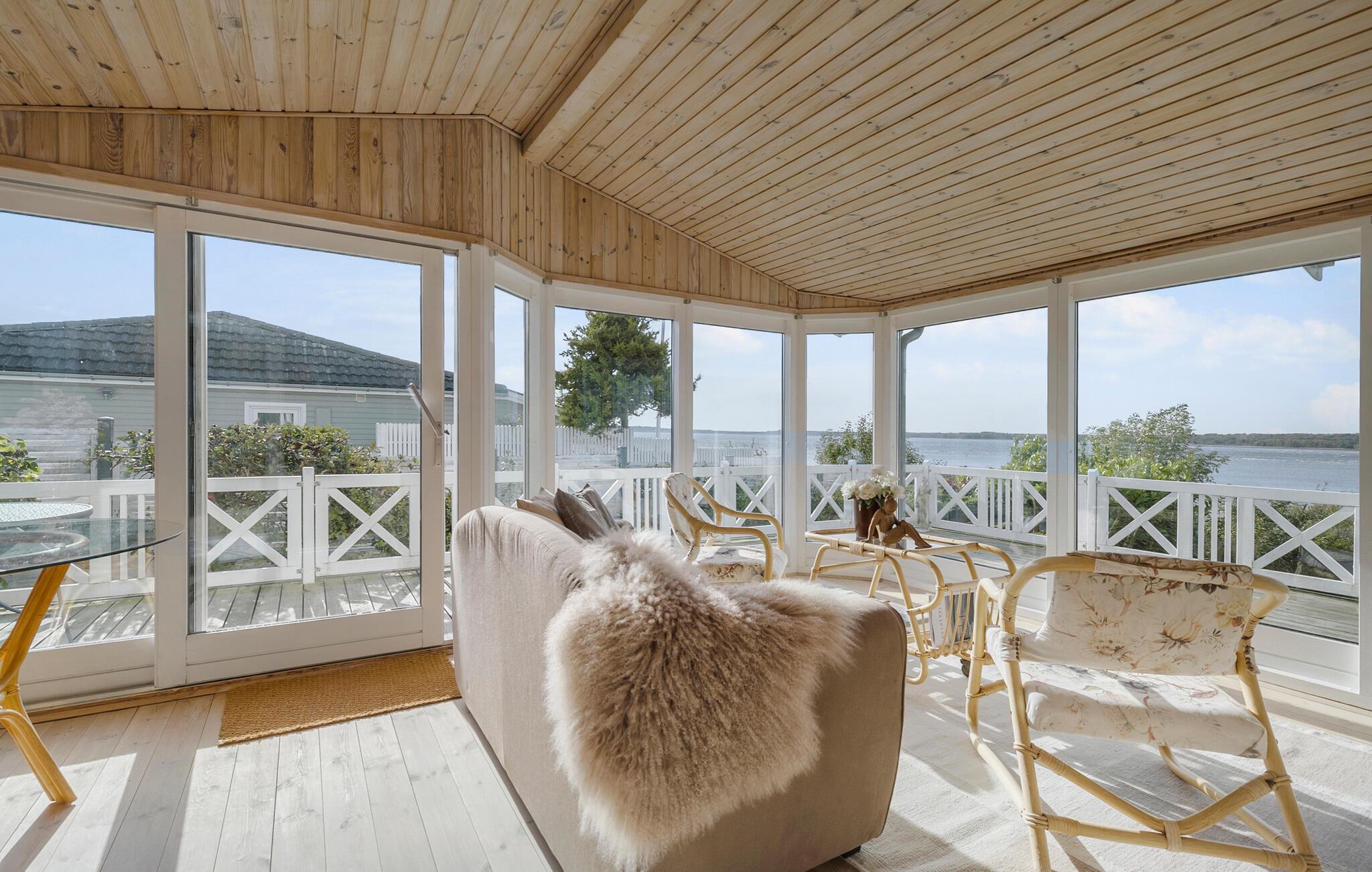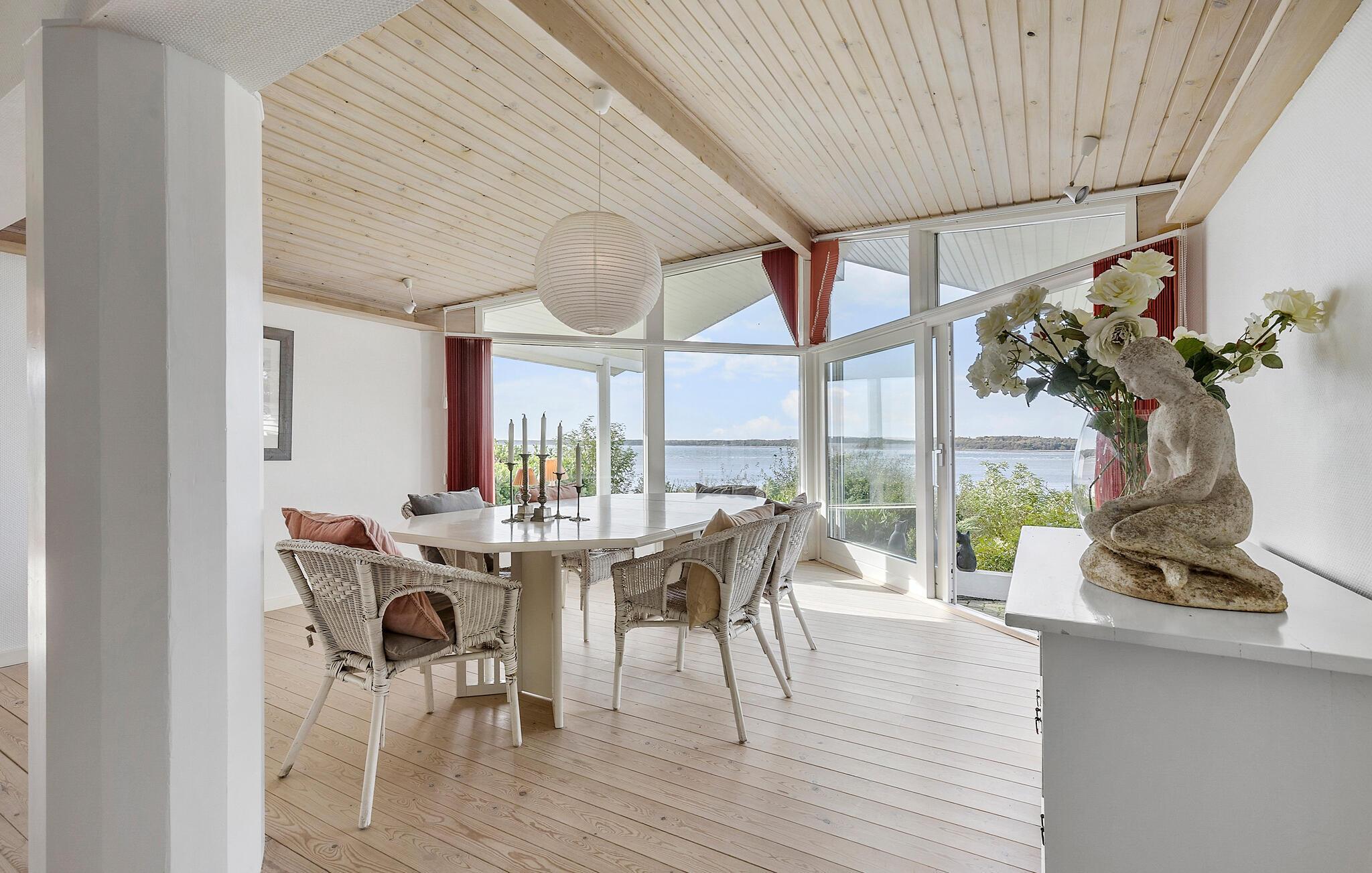 Lyst sommerhus med panoramaudsigt over Roskilde Fjord og åbne terrasser til afslapning og grill.