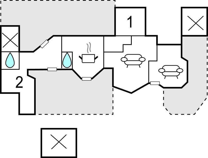 Soveværelse (nr. 2) - 1 Soveplads. (Enkeltseng(e)). 2 Sovepladser. (Dobbeltseng(e)).