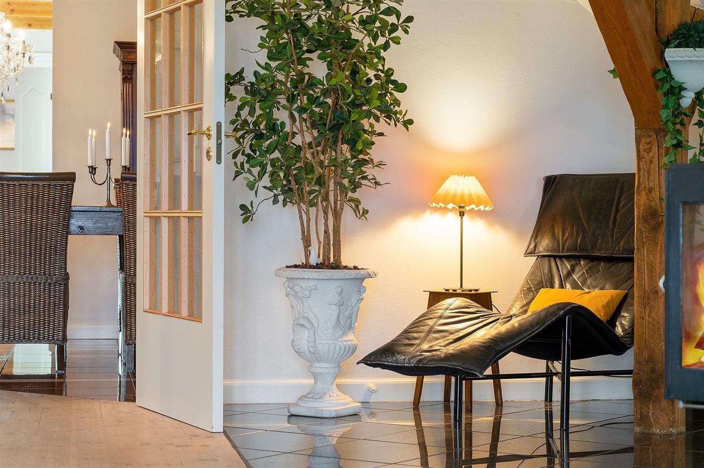 Et smagfuldt indrettet sommerhus - med sans for detaljerne. Huset er beliggende på en stor, parklignende grund, hvor der bl.a. findes en sø med ænder og fugle.