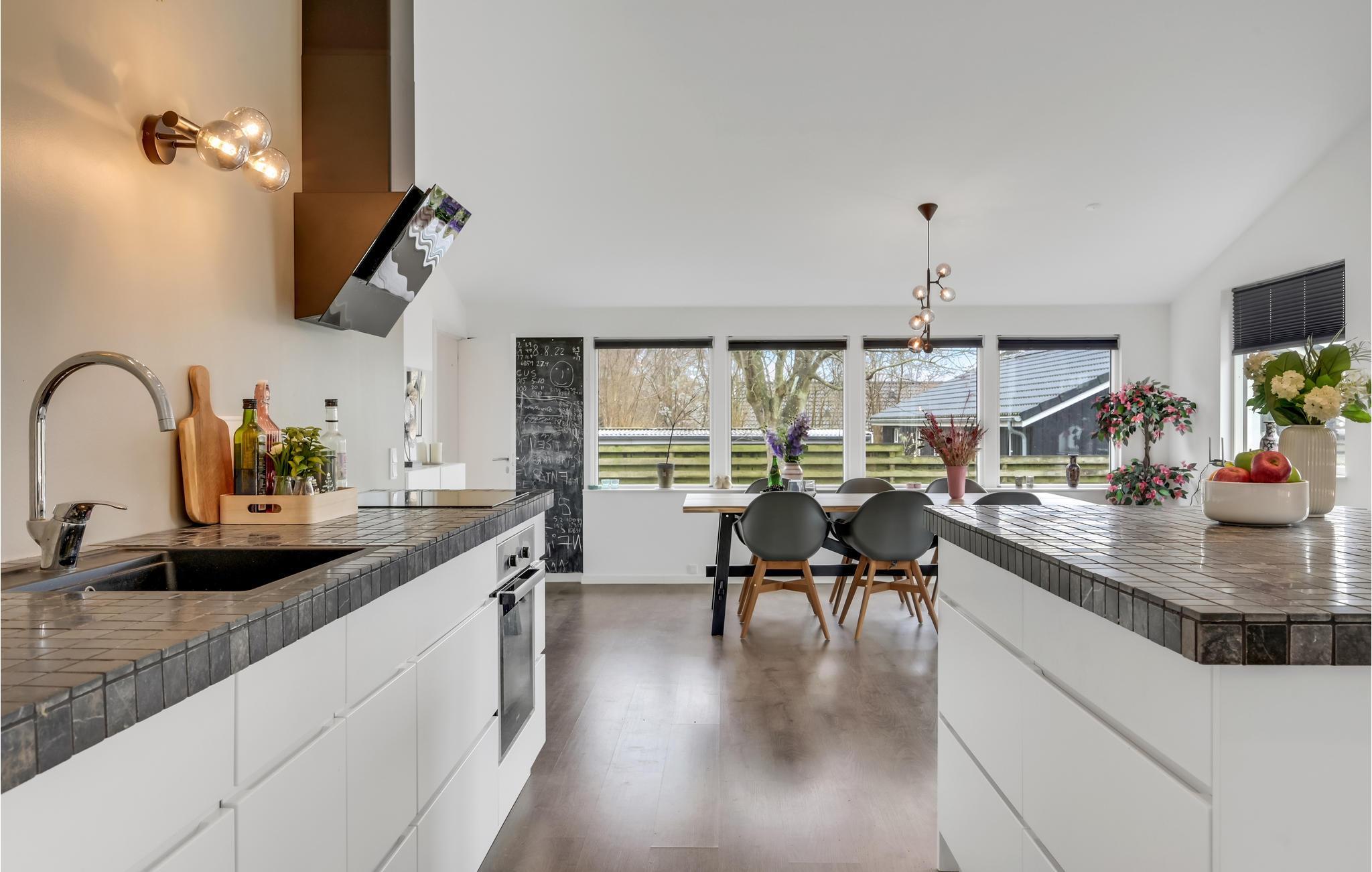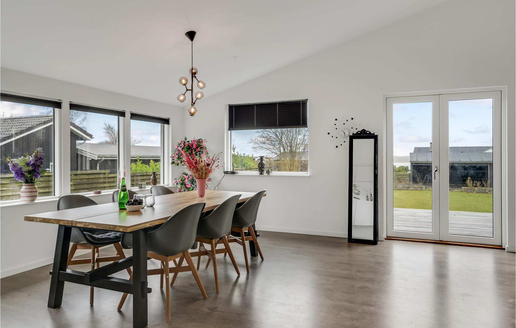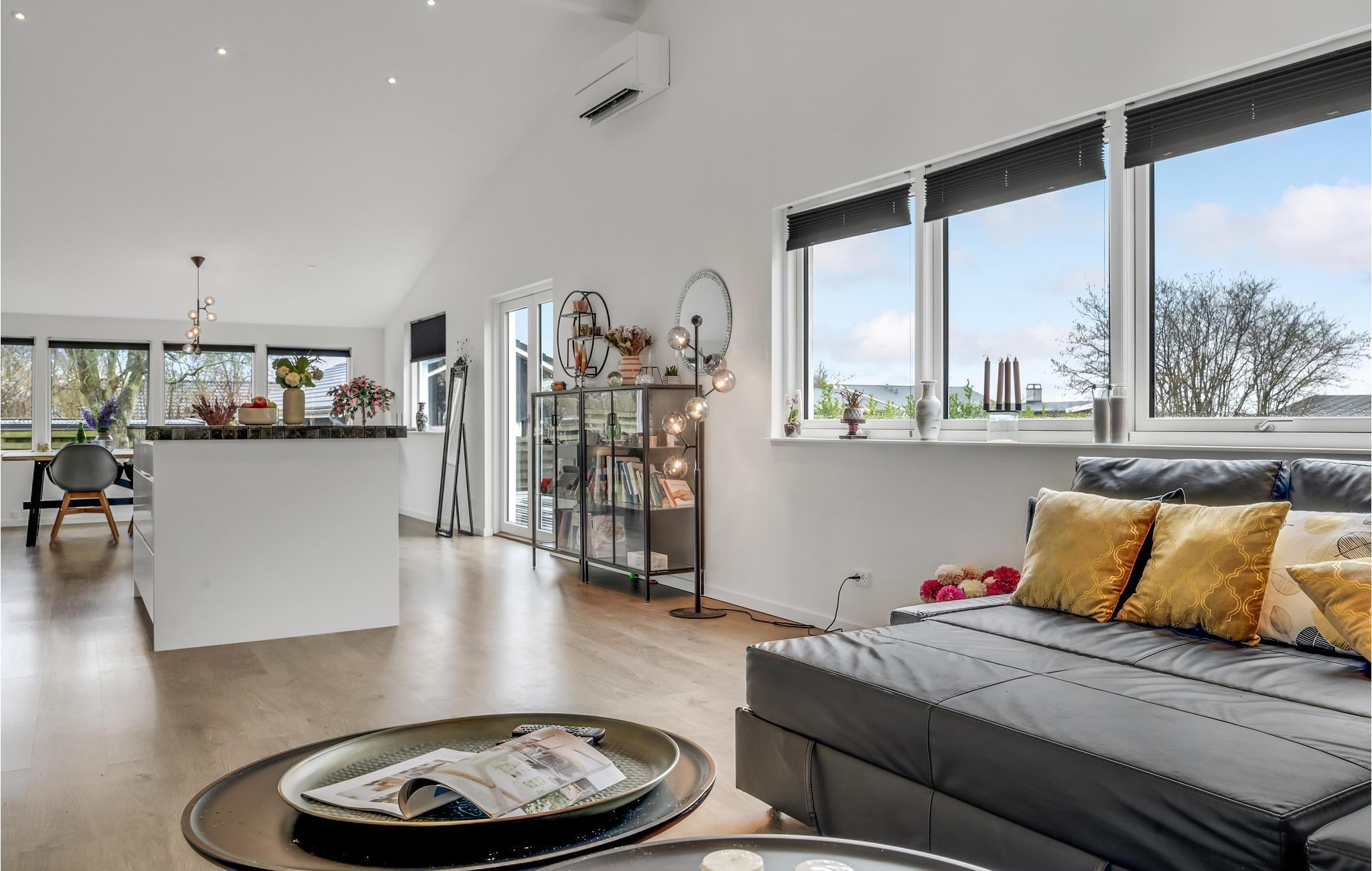 Velkommen til en skøn familieferie, hvor I kan nyde udsigten til Roskilde Fjord. Her får I gode rammer i det store opholdsrum, hvor I kan samles efter en lang dag på farten. Centralt i rummet har I køkkenet, hvor familiens kokke hele tiden kan være med i snakken, der foregår i rummet. Hyg jer med spil og gode serier efter en lang dag på farten eller anret en lækker middag, som kan nydes, mens I lægger jer fast på morgendagens aktiviteter.