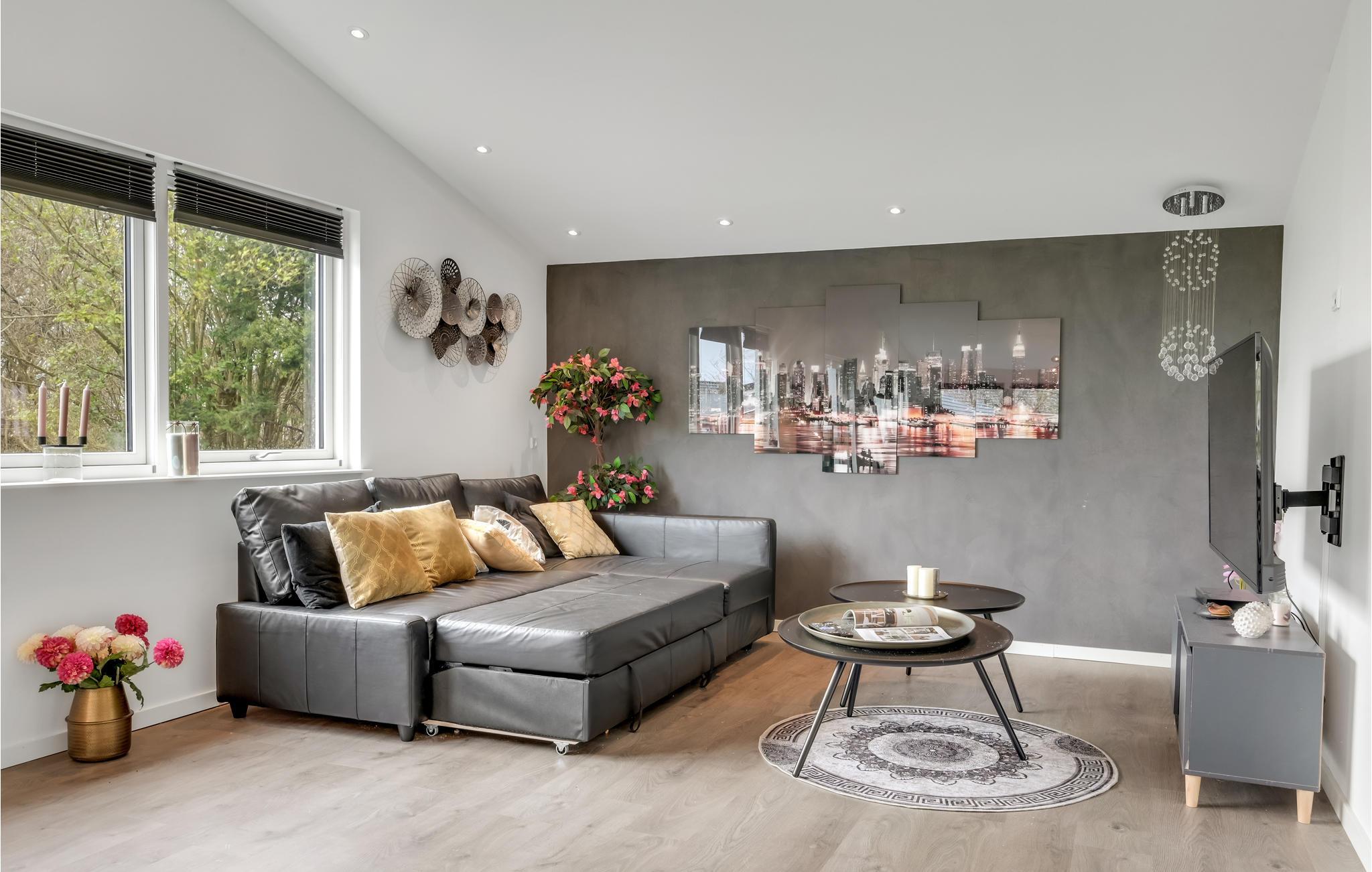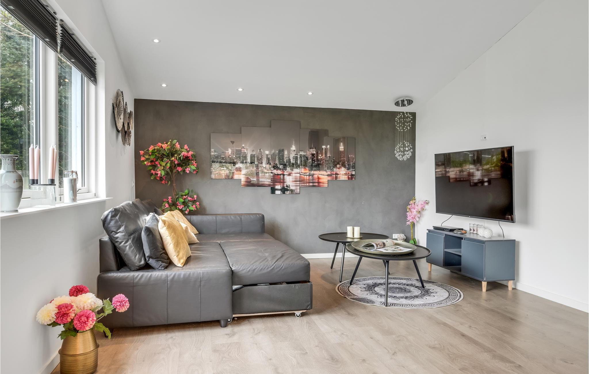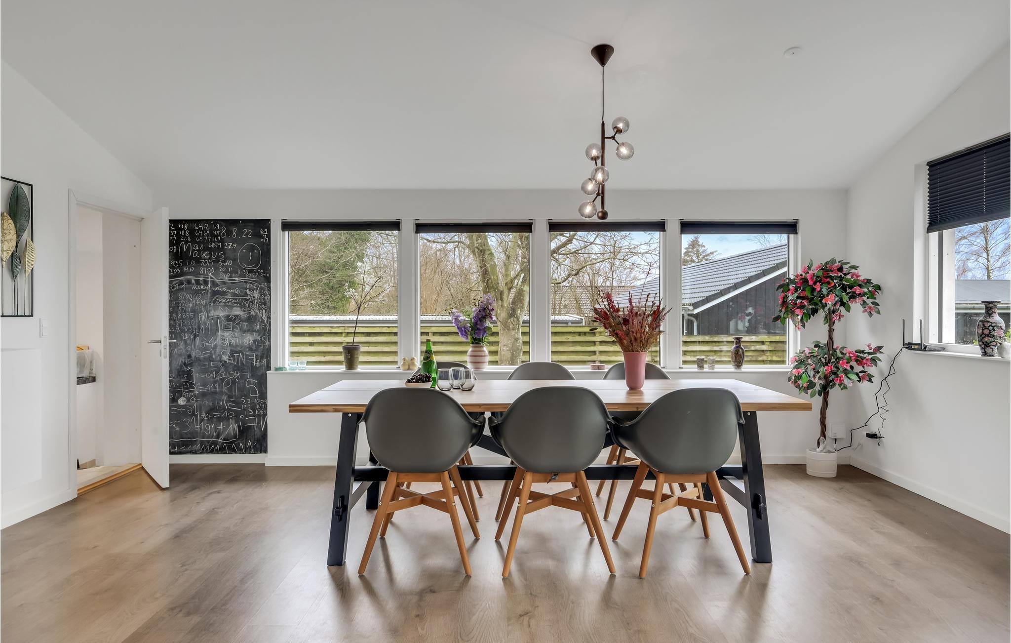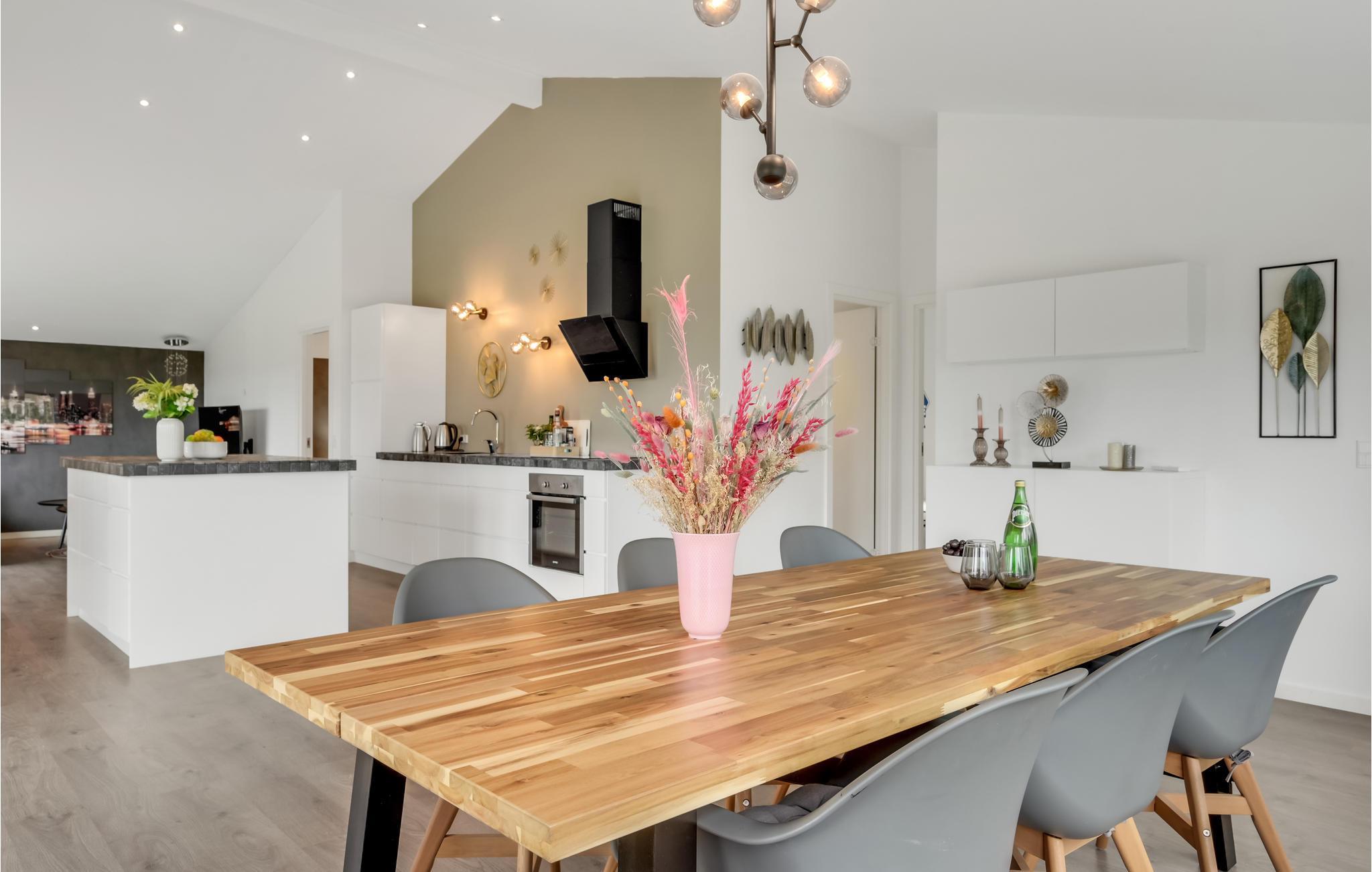 Velkommen til en skøn familieferie, hvor I kan nyde udsigten til Roskilde Fjord. Her får I gode rammer i det store opholdsrum, hvor I kan samles efter en lang dag på farten. Centralt i rummet har I køkkenet, hvor familiens kokke hele tiden kan være med i snakken, der foregår i rummet. Hyg jer med spil og gode serier efter en lang dag på farten eller anret en lækker middag, som kan nydes, mens I lægger jer fast på morgendagens aktiviteter.