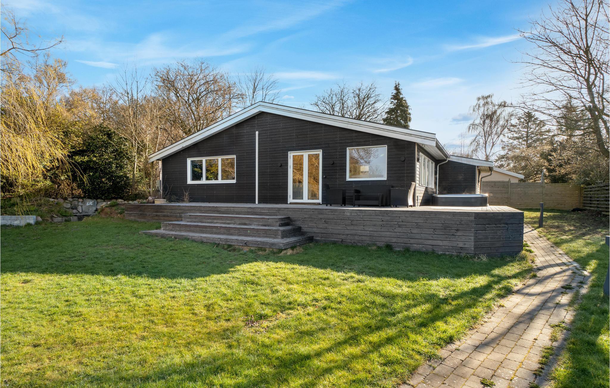 Lyst og moderne feriehus med spabad og fjordudsigt ved Store Havelse Strand.