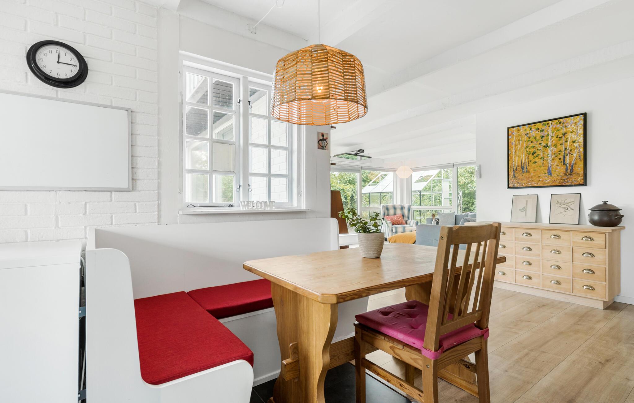 Tag familien under armen og rejs til Store Havelse, hvor der venter jer et herligt ophold i dette charmerende træhus. Indretningen fremtræder pænt og venligt med dejlige lysindfald gennem de store vinduespartier, der samtidig giver en nydelig udsigt til det grønne. Hvis vejret bider lidt fra sig, kan I tænde op i brændeovnen, der giver varme og knitrende lydtapet til aftensmaden ved spisebordet og aftenhyggen i den store sofa i udestuen.