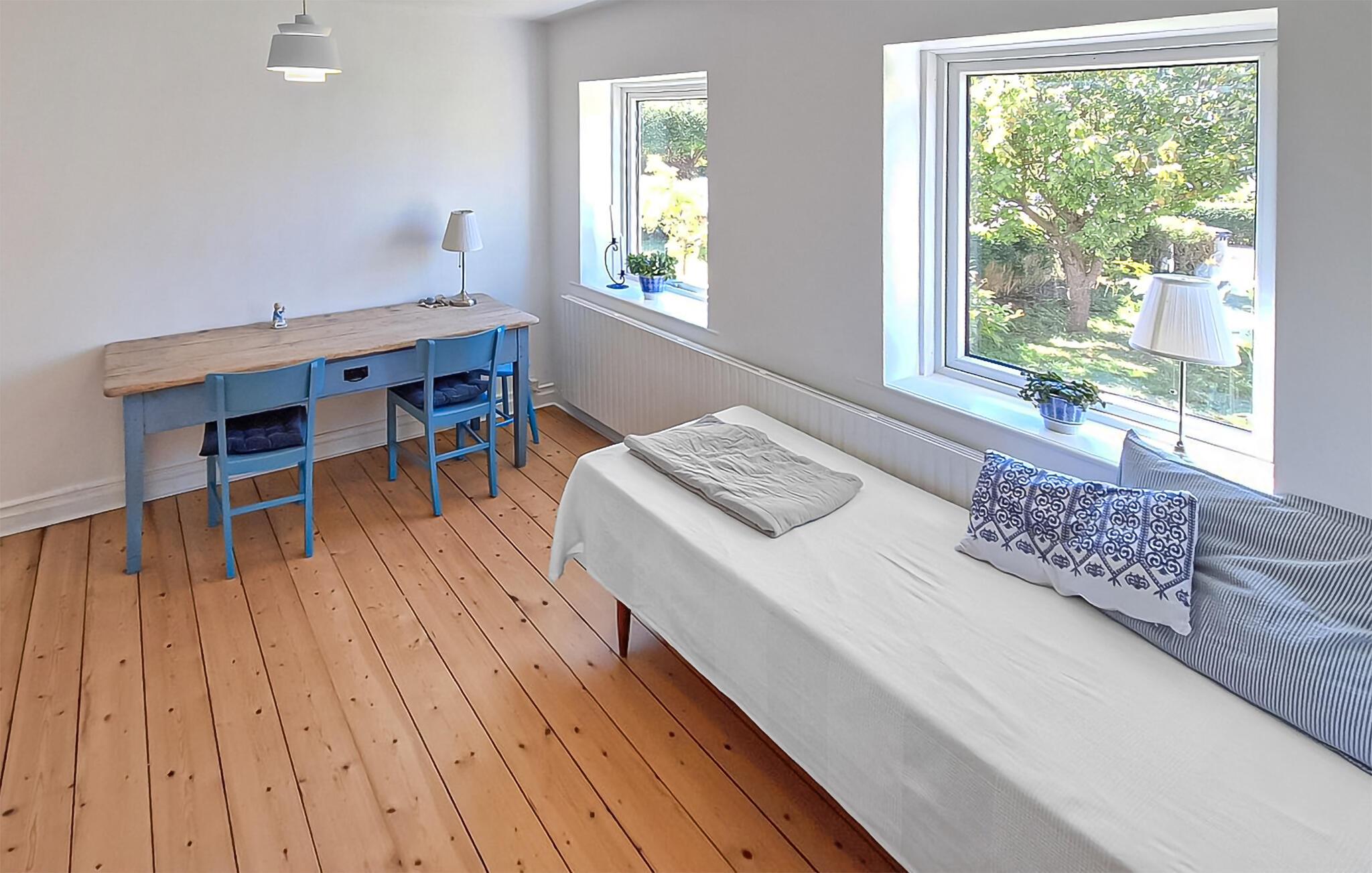 Nyd jeres tid i dette indbydende feriehus, der tilbyder en vidunderlig base for en afslappende ferie på Ærø. Læg hverdagen bag jer og oplev husets ro og særlige karakter. Den lyse opholdsstue med flotte indretningsløsninger og varme farver skaber en hyggelig atmosfære. Gør jer komfortable i den behagelige sofa eller læs en bog i de behagelige lænestole. Tilbered jeres feriemåltider i det smukke køkken-alrum og nyd dem ved spisebordet, der lægger op til at tilbringe tid sammen.