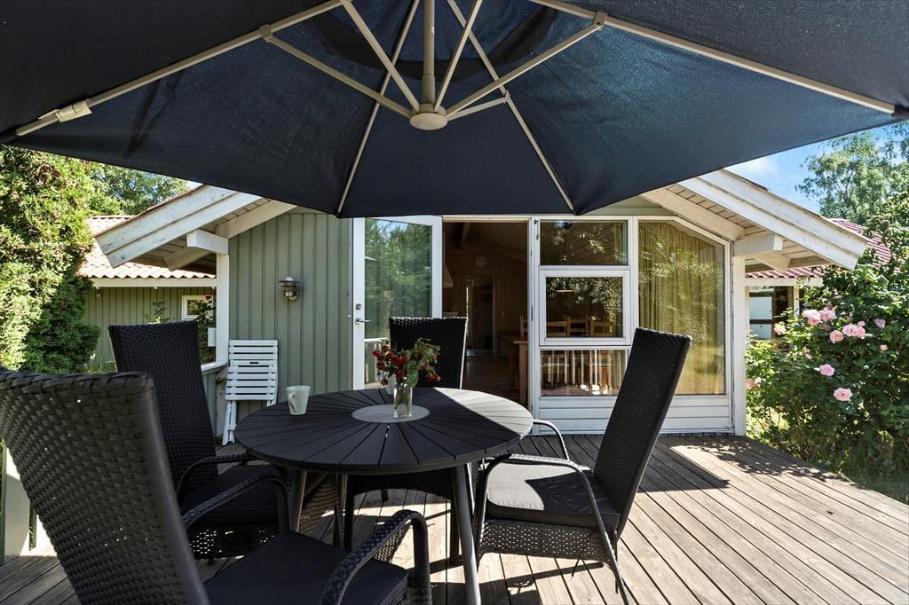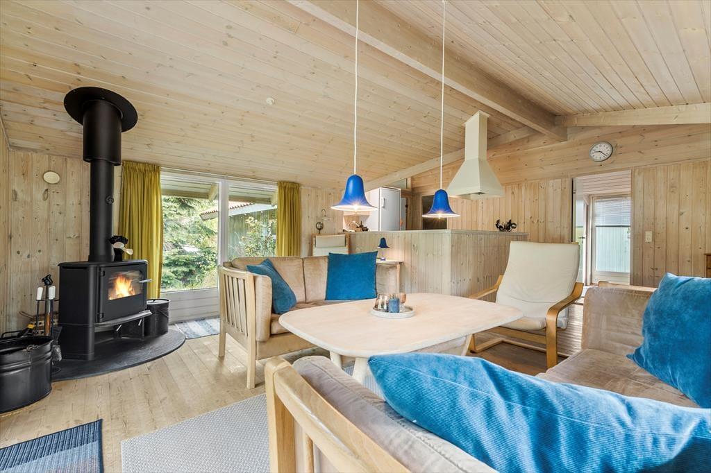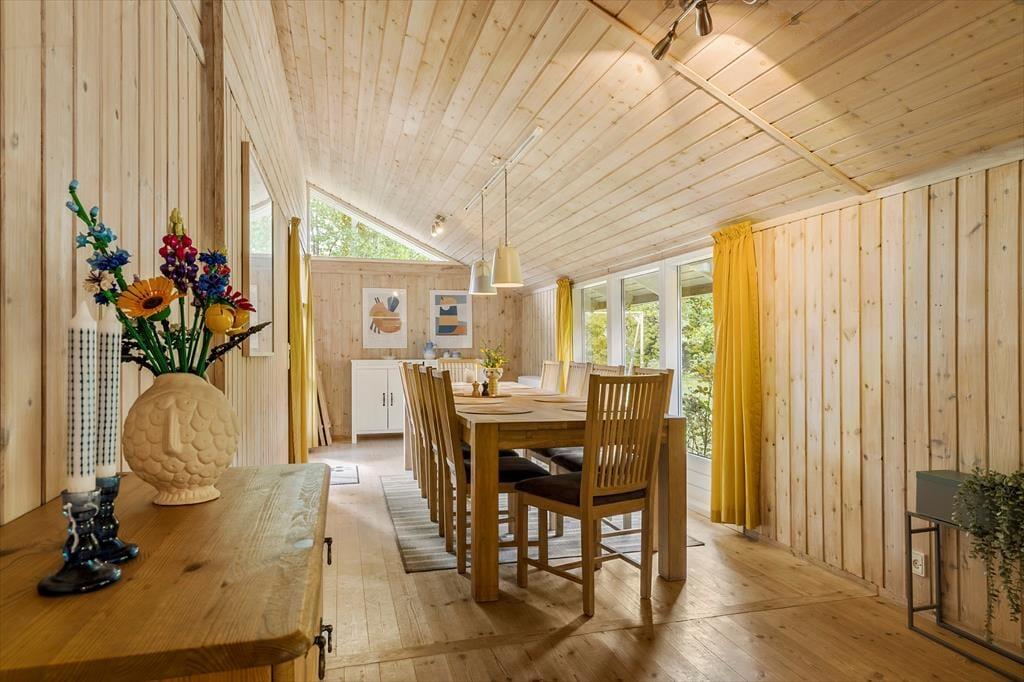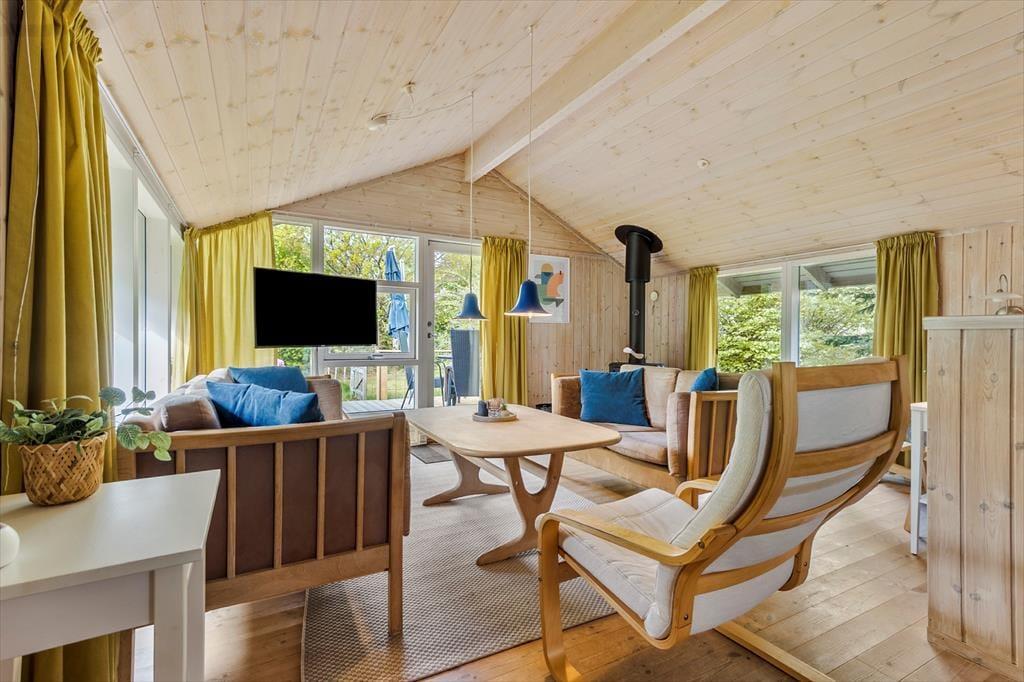 Forestil dig at vågne op til lyden af fuglesang og frisk luft i det naturskønne Store Sjørup. Her, blot 500 meter fra vandet, ligger et dejligt ferieparadis – et hyggeligt og charmerende sommerhus, der indbyder til afslapning og kvalitetstid med dem, du holder af. Træd ind i det rummelige bryggers, hvor der er god plads til alt fra badetøj til barnevogn. Her er også en vaskemaskine, så du ikke behøver at tage så meget ekstratøj med. Det velindrettede køkken har gode faciliteter, der gør det nemt at trylle feriemaden frem, mens duften spreder sig til den hyggelige vinkelstue. Her kan familien samles om det store spisebord og dyste i et af husets mange spil. I kan også slå jer ned i sofaerne og nyde en god film på TV eller foran brændeovnen, der sørger for ekstra varme på kølige aftener. Fra begge sider af stuen fører døre ud til overdækkede terrasser, hvor morgenkaffen, feriemåltiderne og et glas vin kan nydes i ro og mag. Huset har to rummelige soveværelser – det ene med en blød dobbeltseng, det andet med to enkeltsenge. Og som prikken over i’et ligger der et skønt anneks i haven, der både tilbyder to sovepladser og en hyggelig køjeseng, som børnene vil elske.