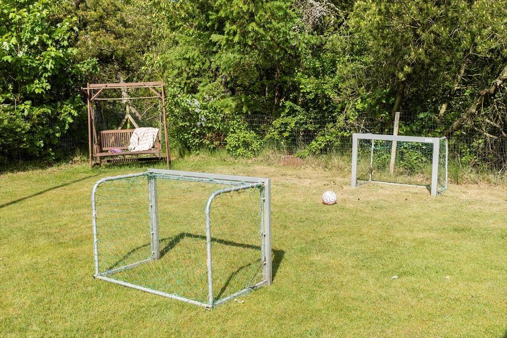 Nyd livet udenfor En skøn have der opfordrer til leg og aktivitet. Her er trampolin, gynger og sandkasse til de yngste og haven er lukket, så du kan bevare overblikket over både børn og hunde. Får du lyst til en mundfuld havluft eller en dukkert, så er der blot 550 meter til den dejlige strand, der er børnevenlig og minder om Vadehavet.