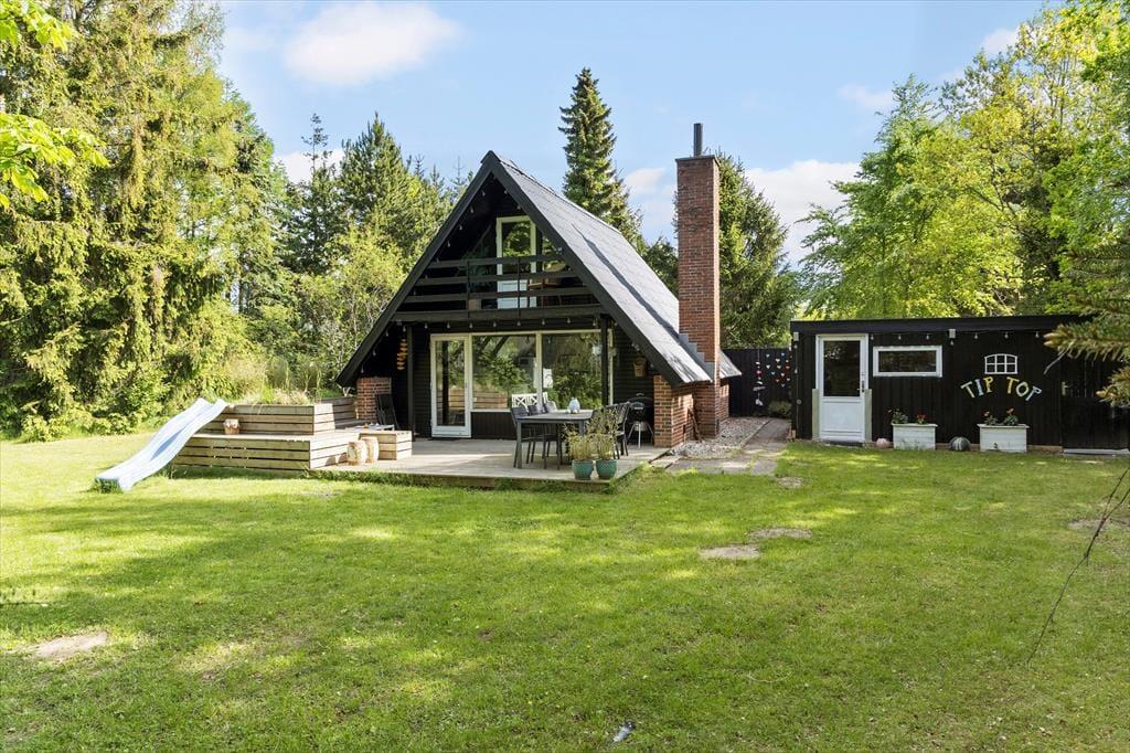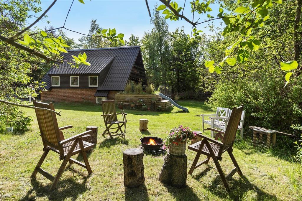 Grunden er som skabt til familieferie og masser af udeliv. Med sin ugenerte beliggenhed og mange små hyggekroge kan I finde både ro og plads til at udfolde jer. Børnene kan boltre sig på rutsjebanen, bygge hemmelige huler eller lave snobrød ved bålpladsen. Her er også flere terrasser, hvor I kan nyde livet, læse en god bog eller samles til grillmiddage. Og så ligger den børnevenlige badestrand blot 450 meter væk, så pak picnickurven, tag håndklædet under armen og nyd dage ved vandet med sand mellem tæerne og bølgeskvulp i baggrunden.