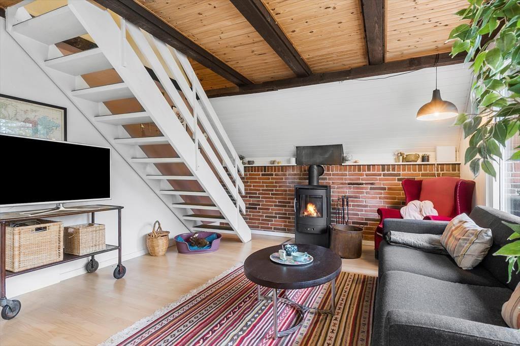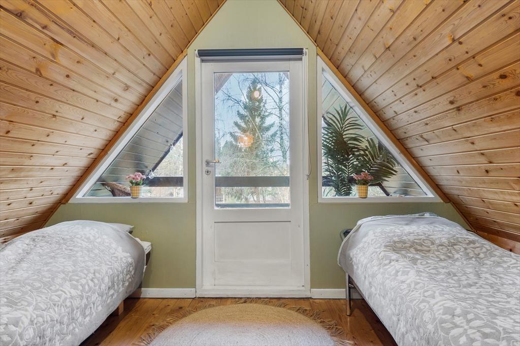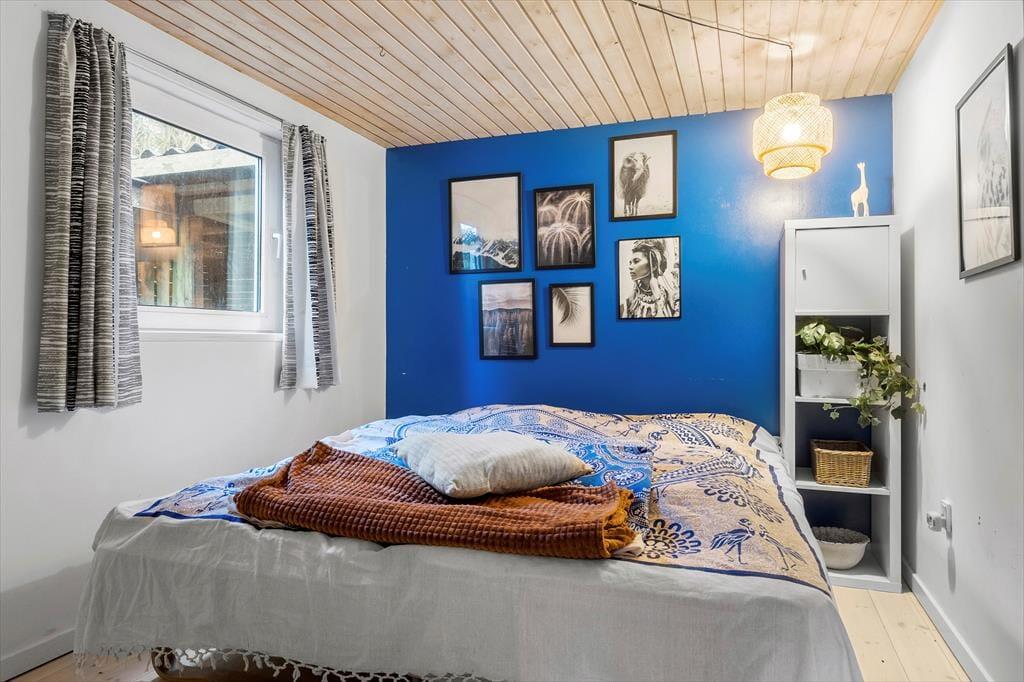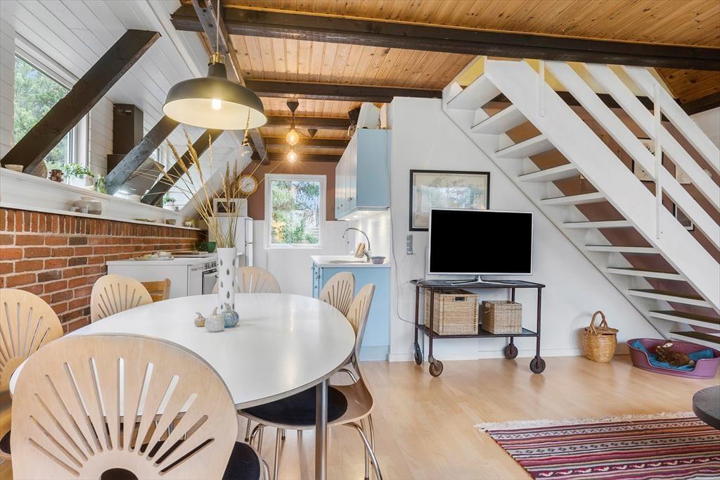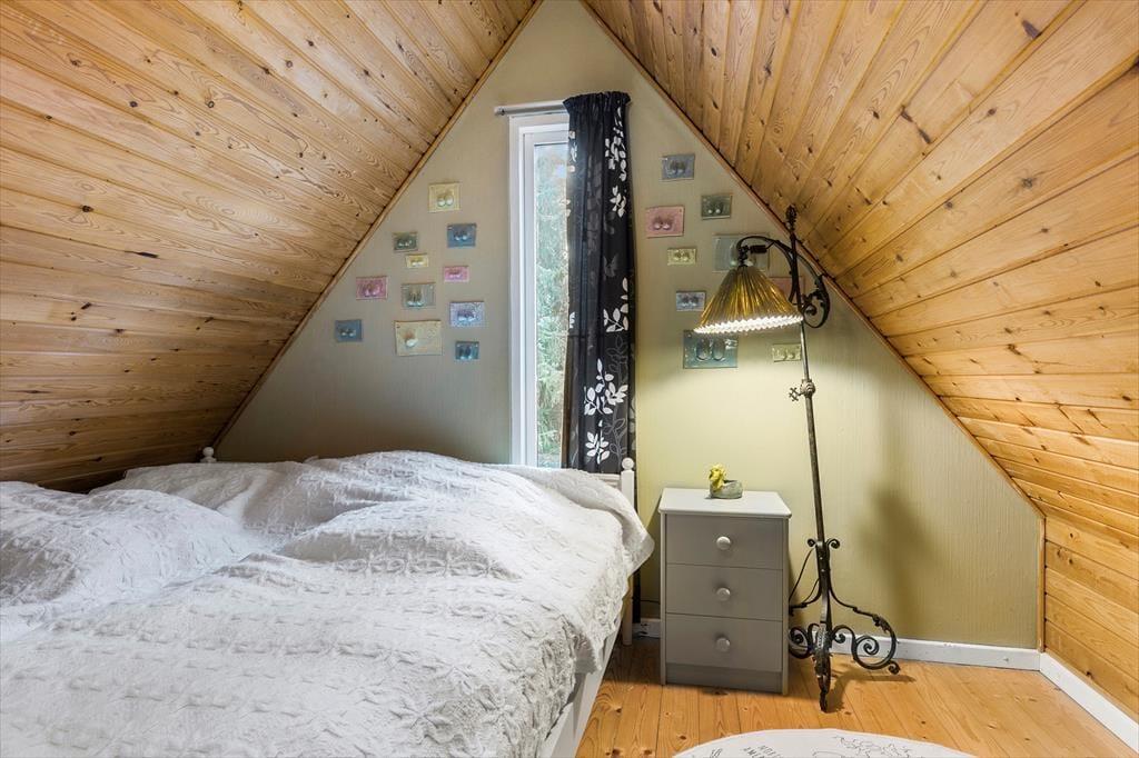 Til dette kreative og hjemlige familie sommerhus, hvor der er plads til hygge og leg og hvor både børn, voksne og hunde føler sig hjemme. Her mødes I af en hyggelig stue, der indbyder til samvær - Brændeovnen er perfekt til kølige aftener, hvor kortspillet og de gode samtaler tager over. Stuen er forbundet med spisepladsen og det åbne køkken, så I kan nyde hinandens selskab, når feriemaden kokkereres. Mens maden simrer i køkkenet, samles I omkring spisebordet til hygge, spil, snak og grin. I huset finder I tre soveværelser. Ovenpå er der et hyggeligt værelse med dobbeltseng samt et med to enkeltsenge, hvorfra du kan gå ud på balkonen og nyde morgenkaffen og stilheden. I stueetagen finder du husets sidste værelse, hvor der er køjeseng, som børnene vil elske samt et lille badeværelse. I annekset er der yderligere et værelse med dobbeltseng, et ekstra badeværelse, en sauna og det er også i annekset, at der er vaskemaskine og tørretumbler. På forsiden af annekset er der aktivitetsrum med pool bord, bordtennis og bordfodbold, så der er mulighed for lidt underholdning, hvis vejret bliver for træls. Annetset egner sig bedst til brug om sommeren.