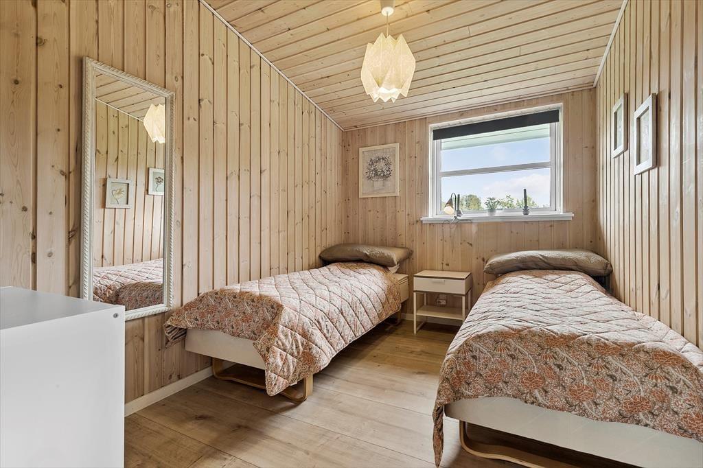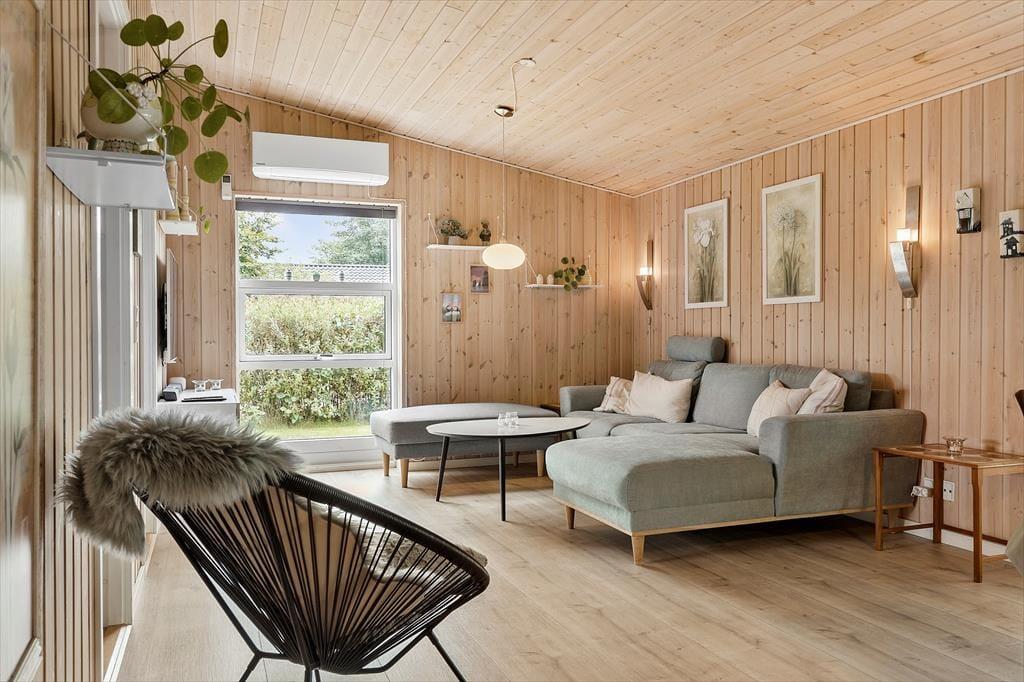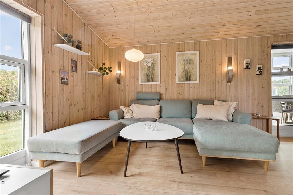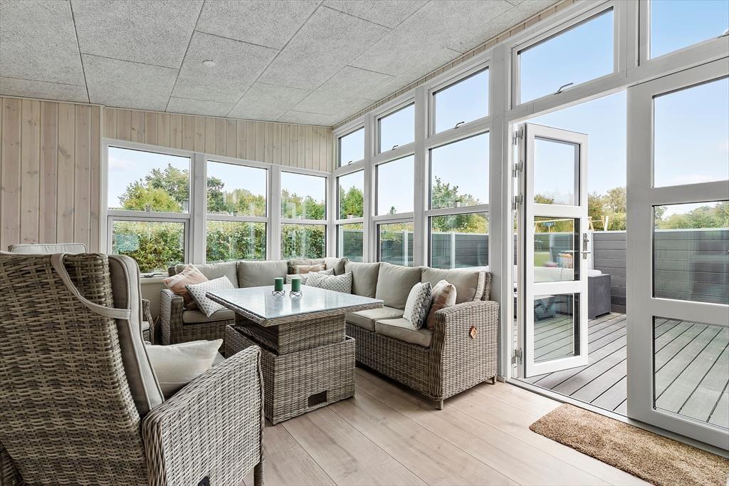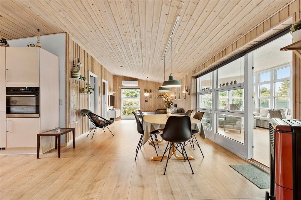 Velkommen indenfor Forestil dig at træde ind i dette dejlige feriehus i Store Sjørup, hvor du straks møder en atmosfære af hygge og afslapning. Huset har et åbent og lyst køkkenalrum, der er familiens naturlige samlingssted, med moderne faciliteter og masser af plads til at lave måltider sammen. Det helt særlige ved huset er den nye udestue, der er rummelig og inviterer til nærvær og hygge. Med sine store vinduer, lyse trævægge og moderne møbler er det et perfekt sted at trække sig tilbage – både om morgenen med en kop kaffe og om aftenen med en god bog. Den "rigtige" stue er også dejlig og her kan du nyde brændeovnens hyggen og varmens. De tre soveværelser er alle indrettet med tanke på en god nattesøvn. Ét værelse har en dobbeltseng, mens de to andre har enkeltsenge, så hele familien kan sove godt efter en dag fyldt med oplevelser. Og hvis I har gæster med, byder annekset på ekstra plads med dobbeltseng, køjeseng og eget badeværelse – en perfekt lille afskærmet del til gæster, store børn og lille familie.