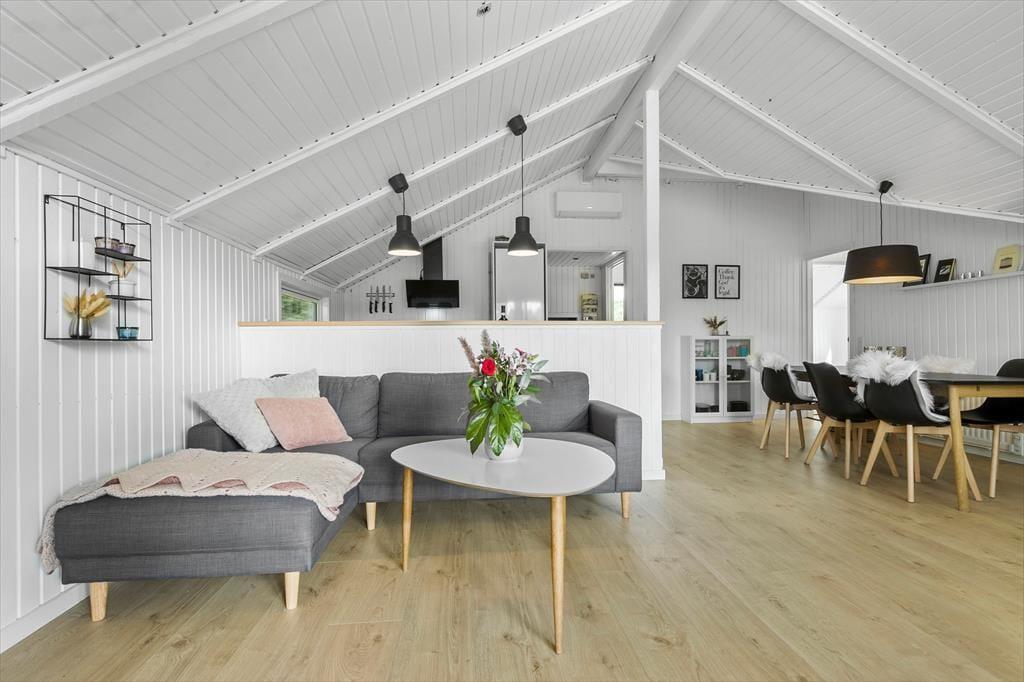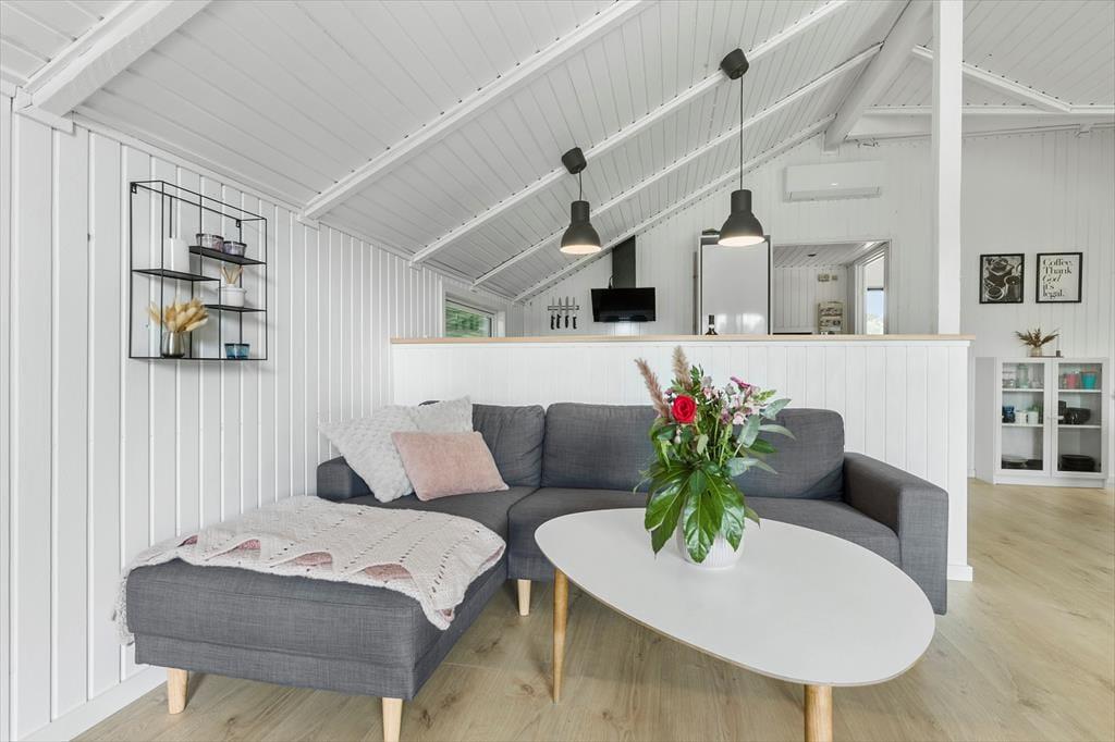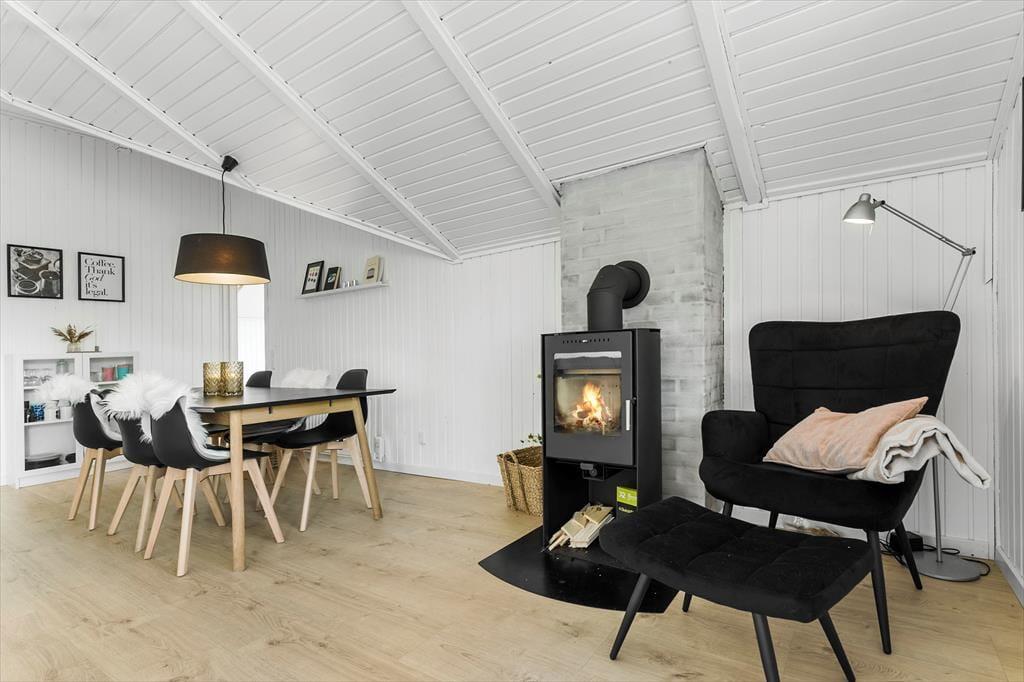 Velkommen indenfor Træd ind i din næste ferie i et nyistandsat sommerhus, hvor moderne komfort møder hyggelig charme! Forestil dig at starte dine dage med morgenkaffen på den store, indhegnede terrasse, hvor et solidt hegn sikrer, at både hunde og børn kan nyde friheden uden at løbe væk. Det er det perfekte sted at lade solen varme dig, mens du ser din hund lege omkring og dine børn have det sjovt. Indenfor møder du et lyst og åbent rum, hvor stue, spiseplads og køkken flyder sammen og skaber en hyggelig atmosfære for familiehygge. Brændeovnen tilføjer ekstra varme og stemning til de kølige aftener, mens tre gode soveværelser sørger for, at du og dine nærmeste får en god nats søvn. Det lækre badeværelse sikrer god komfort, og de åbne lofter til kip giver en dejlig følelse af rummelighed og lys.