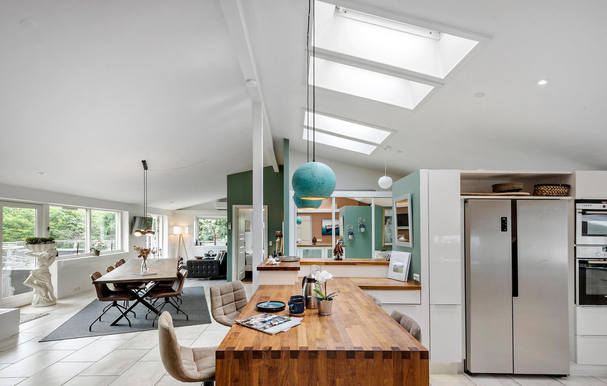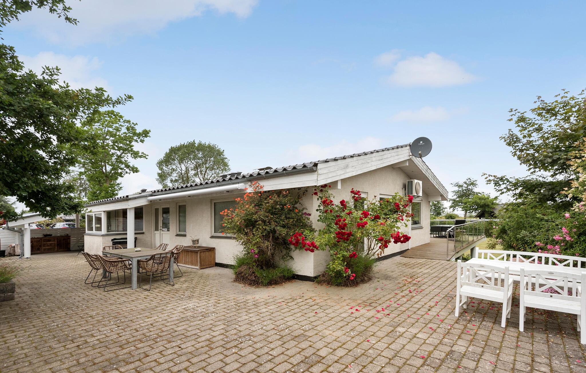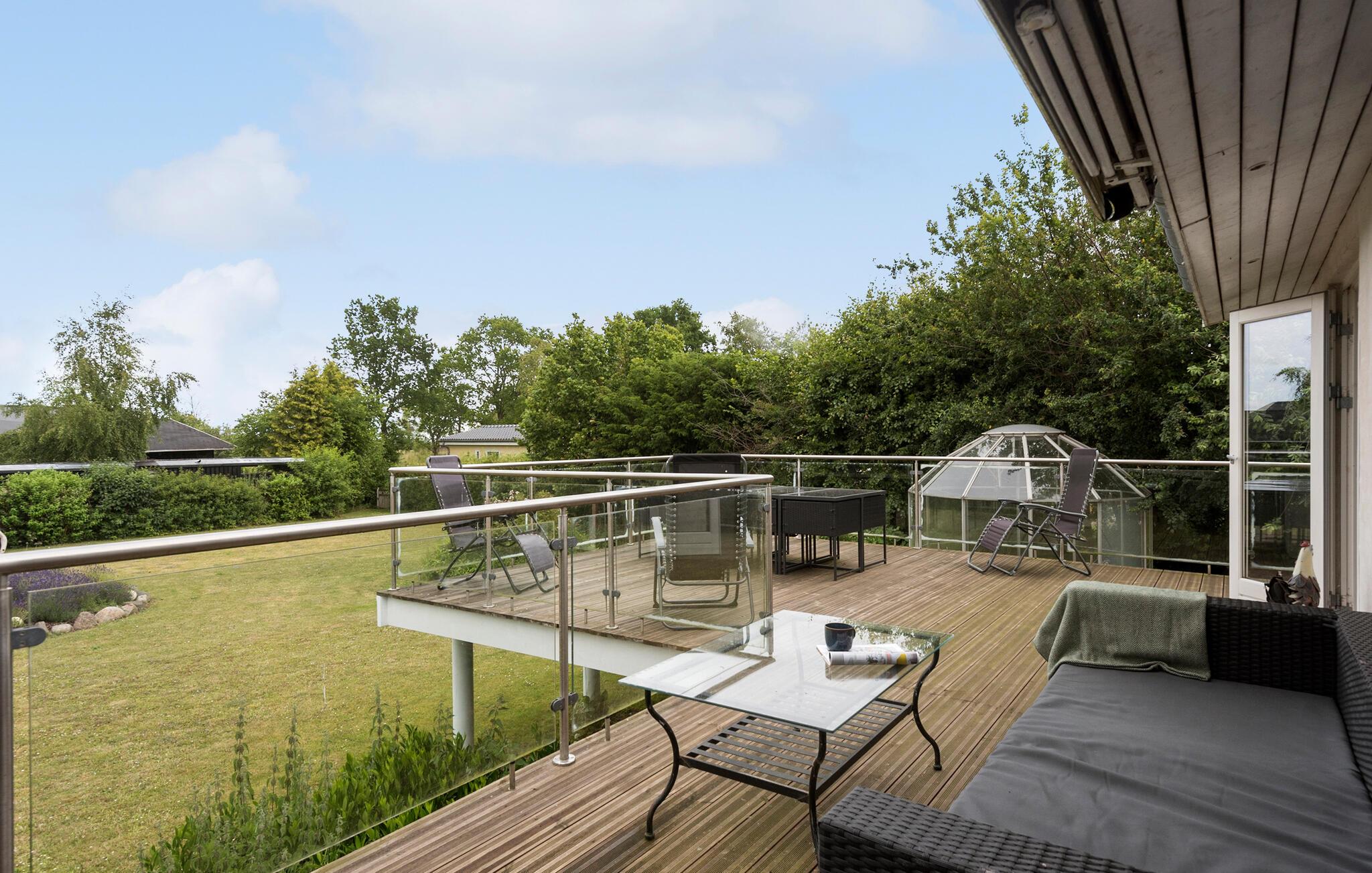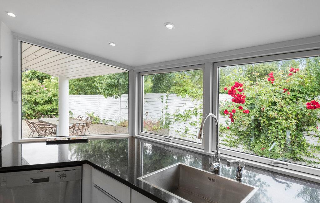 Kun 150 meter fra stranden finder I dette moderne og indbydende sommerhus men lækre faciliteter. Her venter jer lyse og åbne opholdsrum, som hurtigt vil blive jeres samlingssteder på ferien. Nyd skøn kvalitetstid sammen foran pejsen, spil kort eller læs gode bøger. TV-stuen lægger op til storslåede filmaftener, bare vælg en film og jeres favorit-snacks og sæt jer godt til rette. Feriens måltider nydes om det fine spisebord, eller hvad med at trække ud på terrassen, når vejret er til det. Her kan I starte dagen med en kop dampende kaffe, og planlægge jeres udflugter og aktiviteter mens børnene leger i haven. Senere kan I holde en lækker grillmiddag og nyde den lune sommeraften. Børn og barnlige sjæle vil elske aktivitetsrummet, hvor I kan udfordre hinanden til blandt andet bordfodbold og bordtennis. Efter en aktiv dag er det skønt at tage et spabad og komme helt ned i gear.