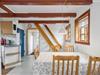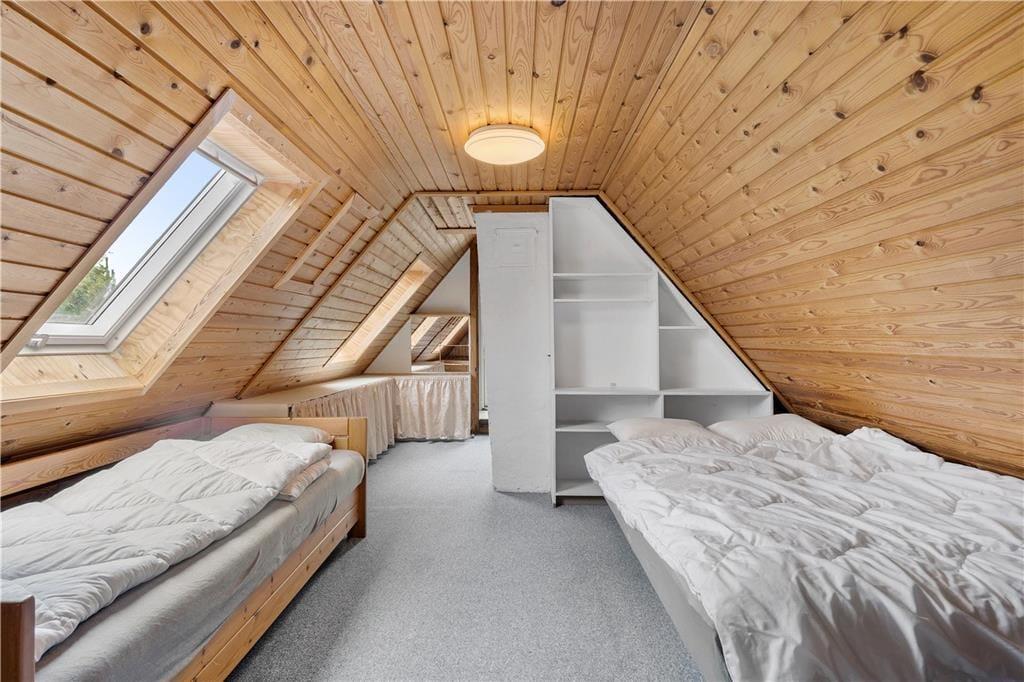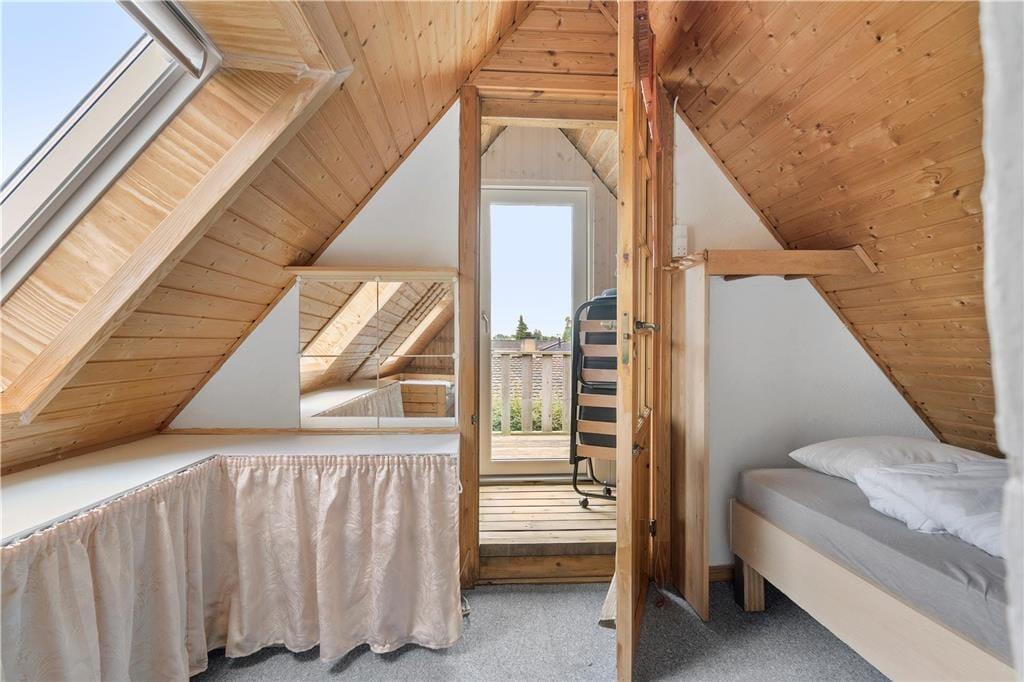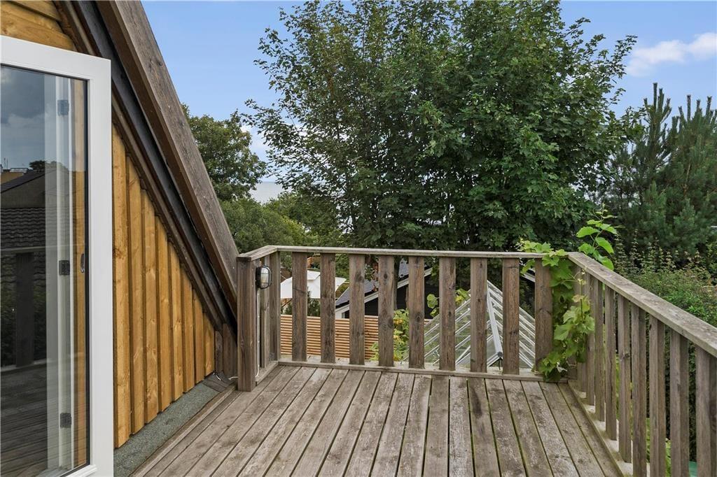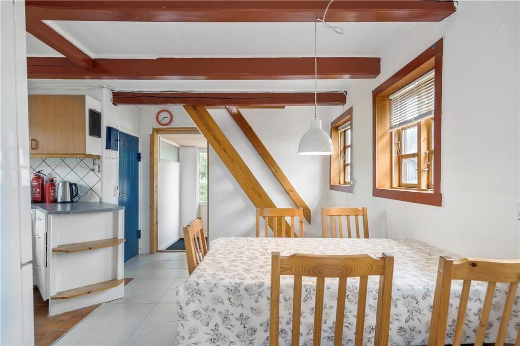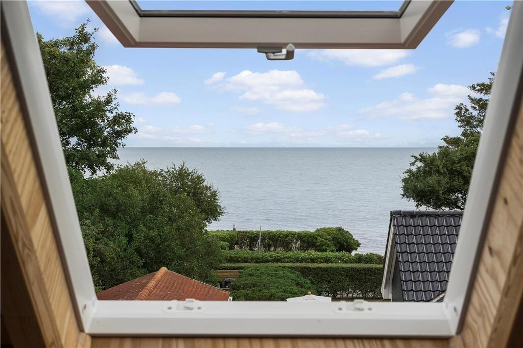 På 1. sal er der et stort værelse med 1 dobbelt sovesofa + 2 senge. På 1. sal finder man også en svalegang med skøn udsigt over vandet.