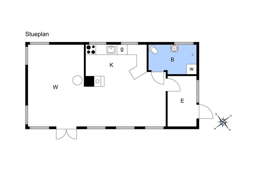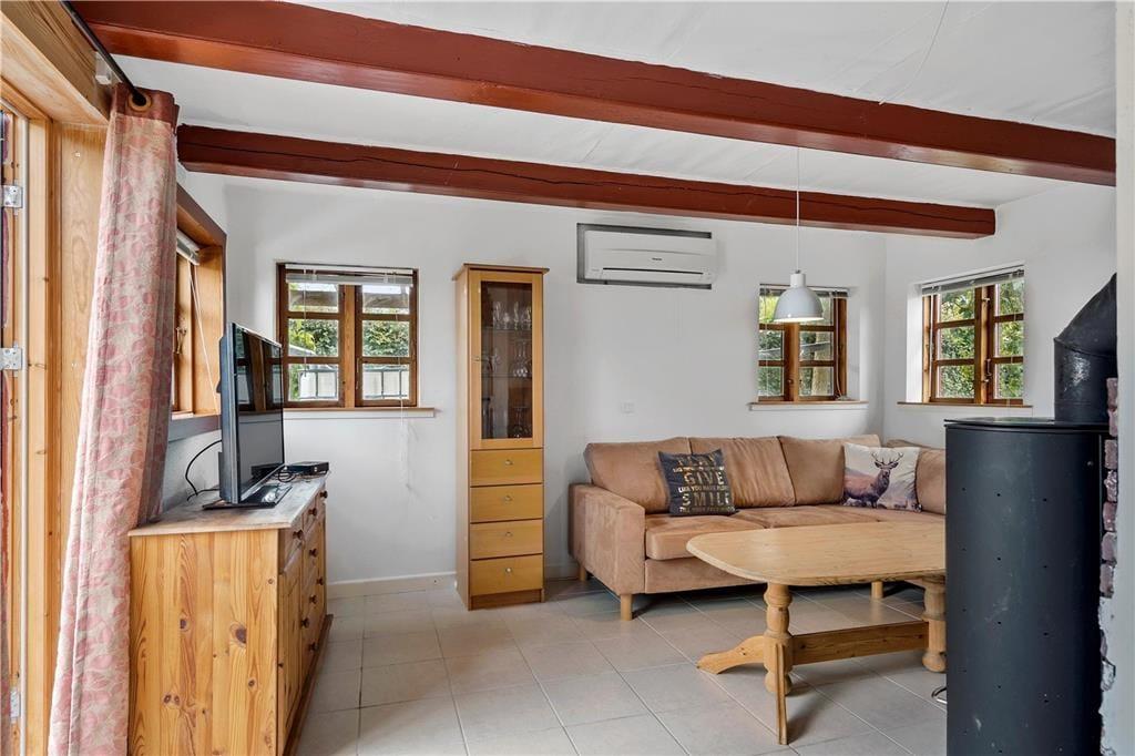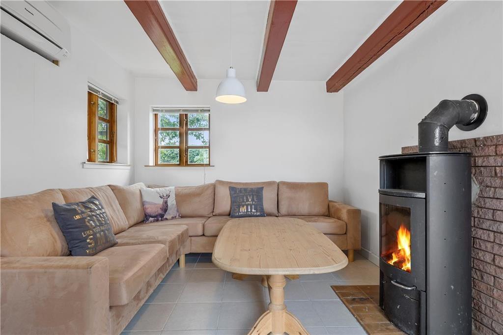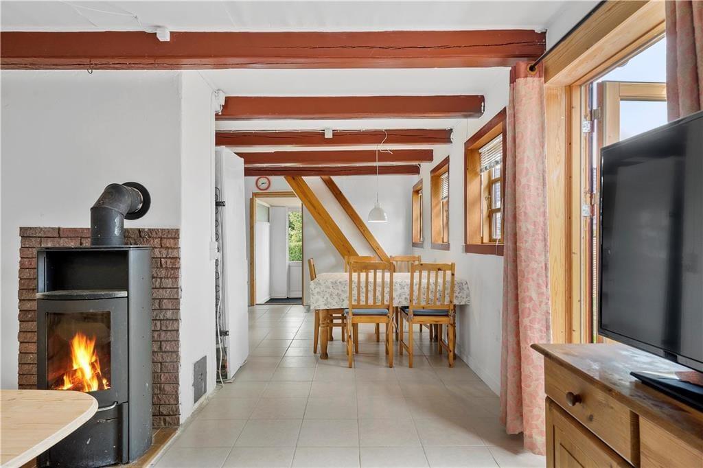 Stuen indeholder en hjørnesofa, brændeovn og fra stuen er der udgang til terrassen med havudsigt. Internet og TV.