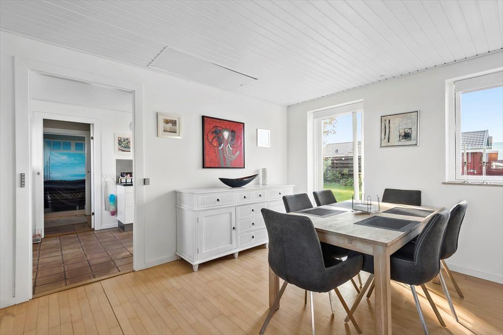 Huset indeholder: Dejligt køkken med bl.a. køleskab, fryser, komfur, emhætte, opvaskemaskine og kaffemaskine, elkedel. I køkkenet er der en fin lille spiseplads til 2 personer, hvorfra der er skøn havudsigt.