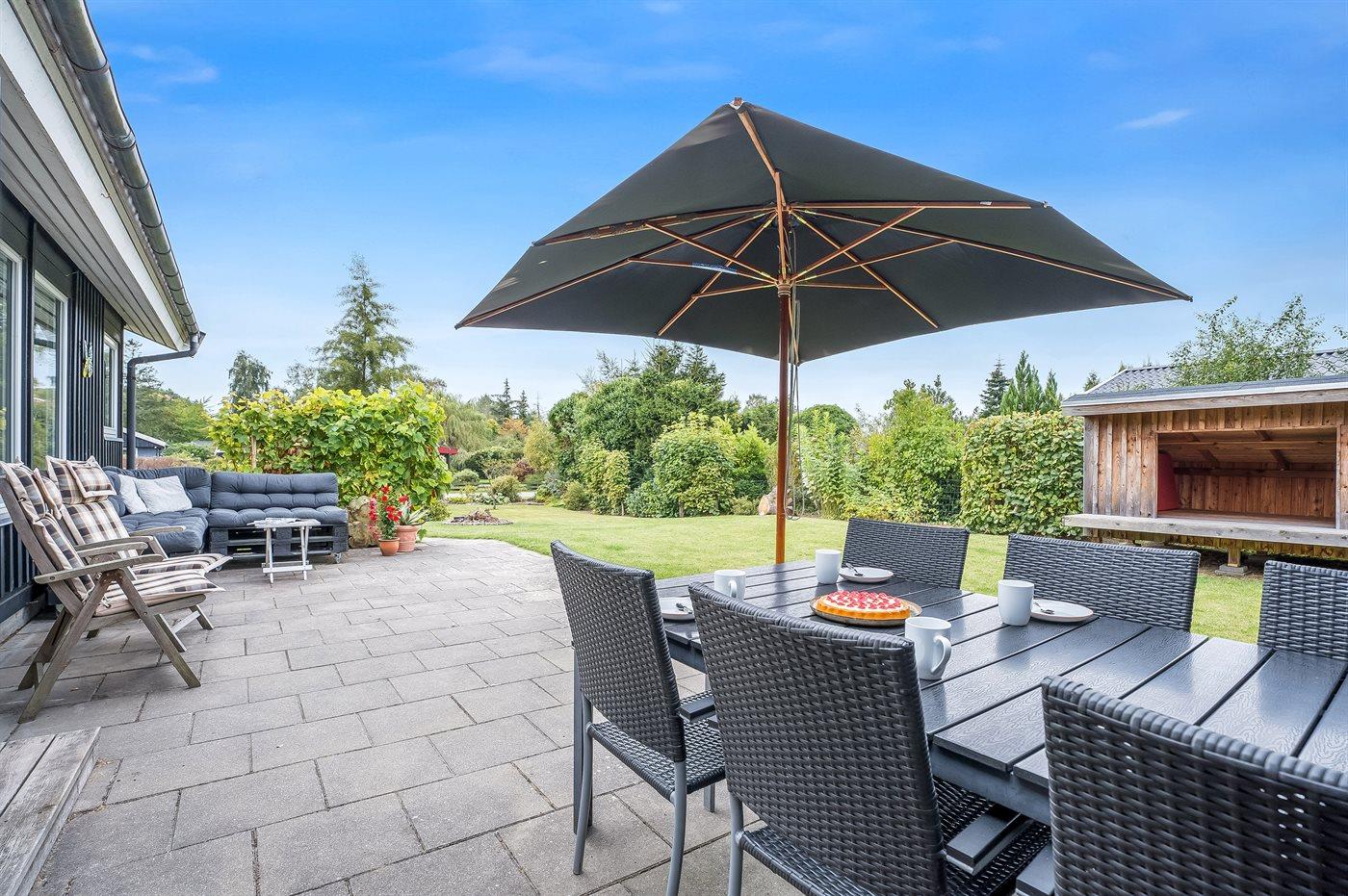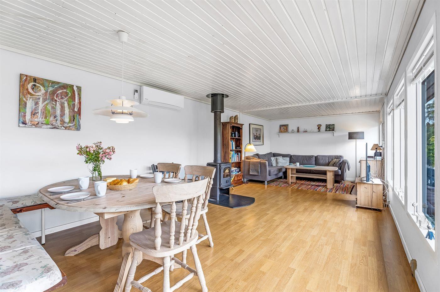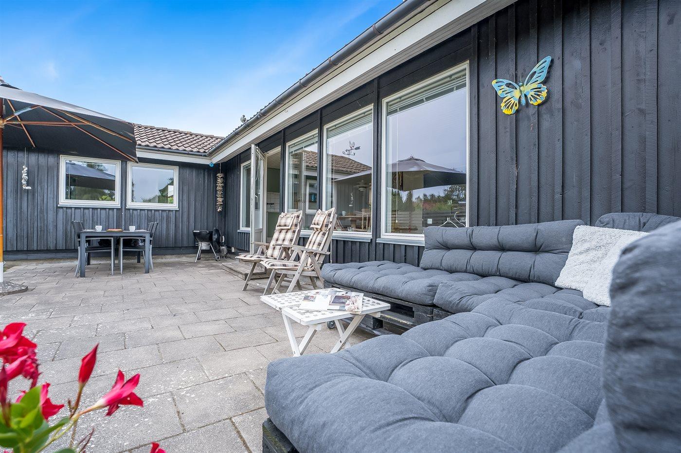 Sommerhus beliggende ca. 100 m fra strand med badebro, legeplads med gynger, vippe og rutsjebane og lille privat strand med adgang for husets lejere. Ved huset er der to dejlige terrasser.