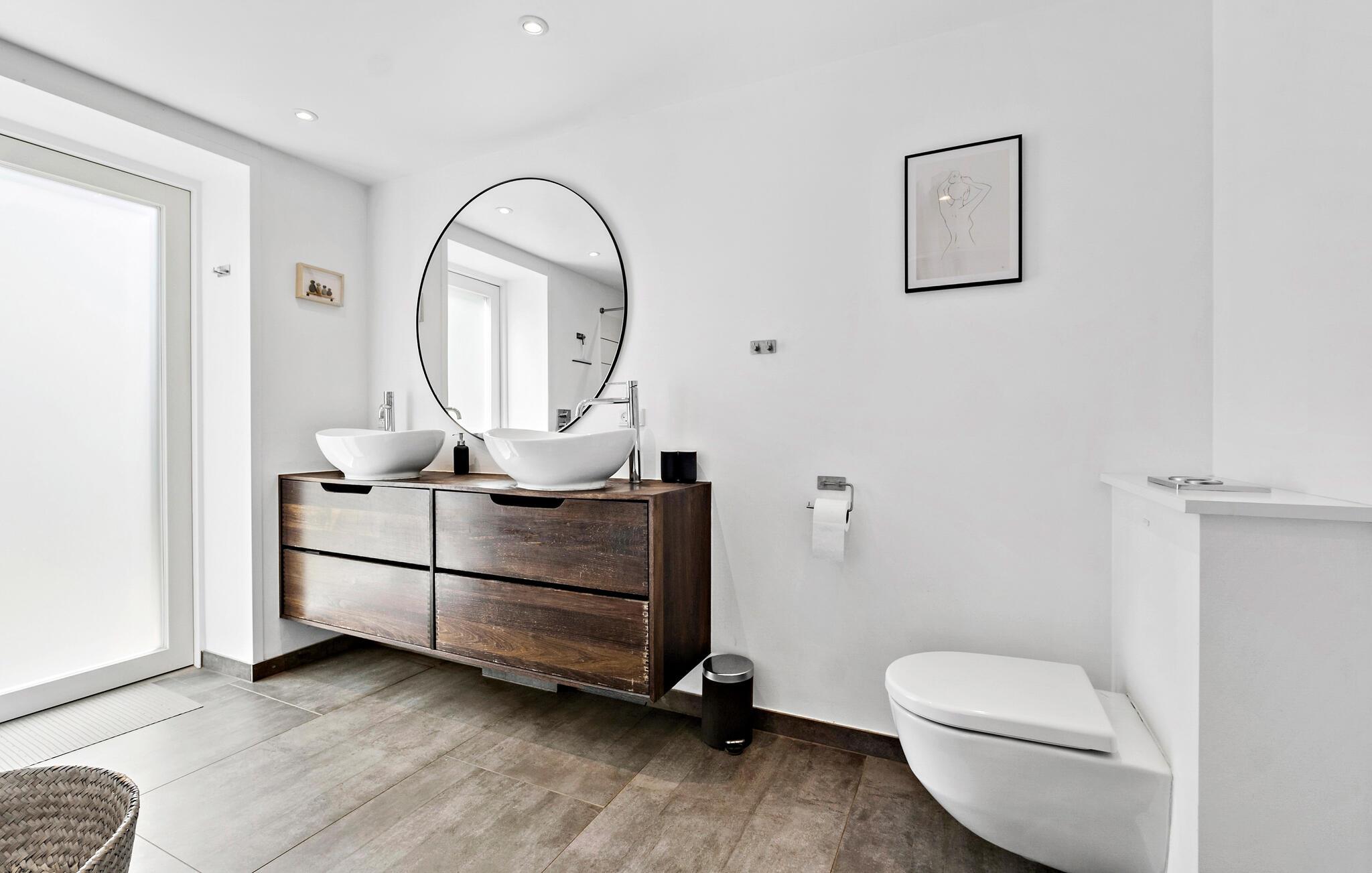 Badeværelse (nr. 1) - WC. Varmt og koldt vand. Bruser