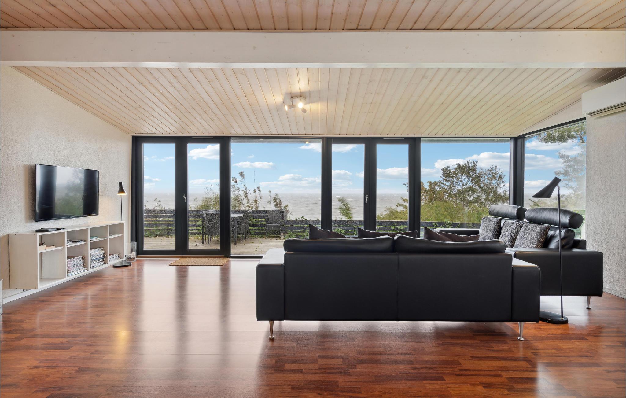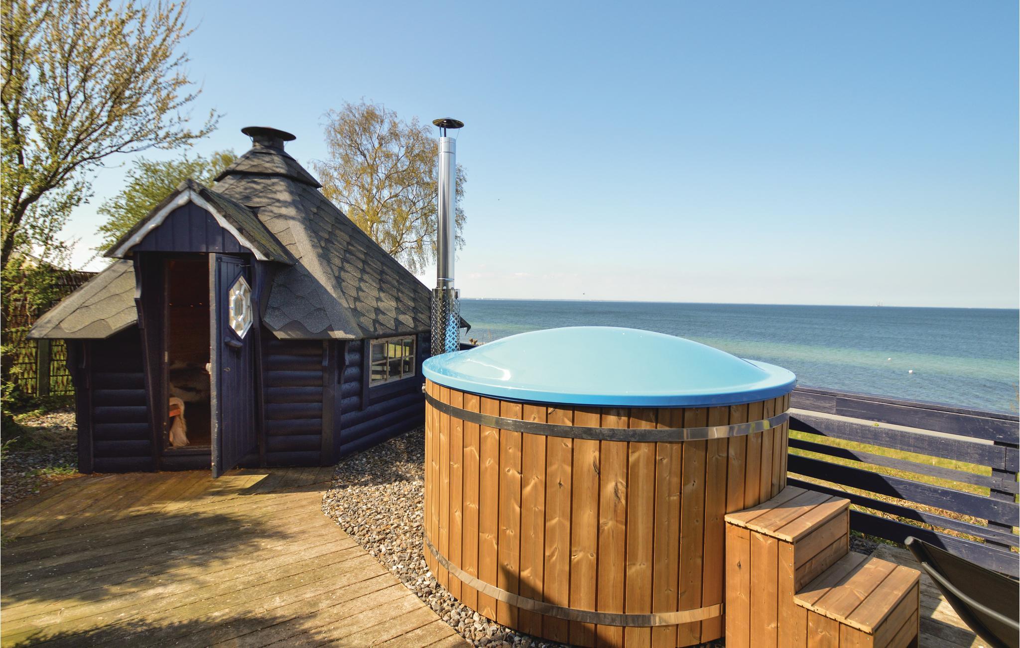 Med panoramaudsigt over Køge Bugt, ligger dette dejlige sommerhus. Huset er udstyret med komfortable møbler og gode senge. I det dejlige køkken finder I alt i moderne hjælpemidler, og fra den store stue har I en flot udsigt over vandet. Til huset hører en stor terrasse med panoramaudsigt samt en rigtig hyggelig grillhytte med plads til otte personer. Endvidere kan I sidde i det lækre, brændefyrede vildmarksbad på terrassen og nyde udsigten og måske også synet af den smukke stjernehimmel.