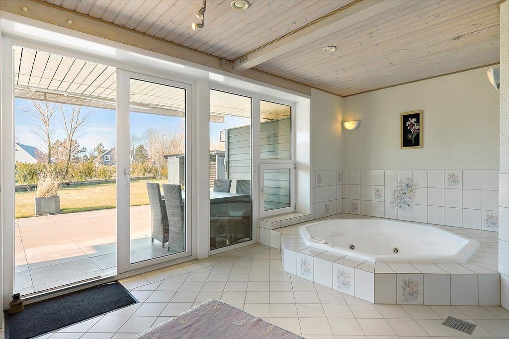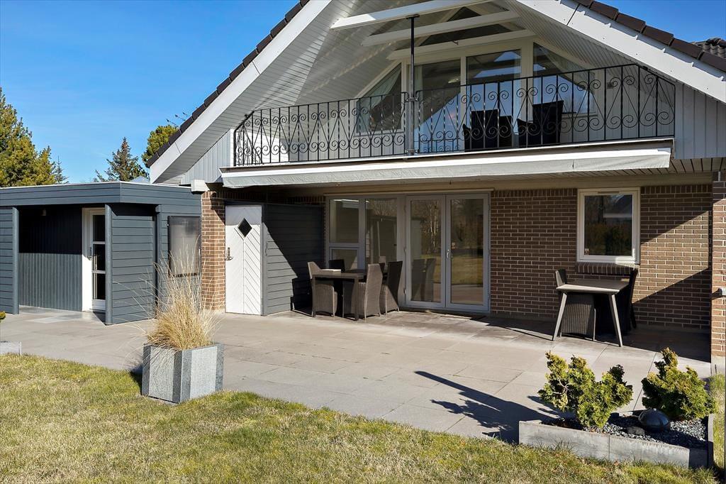 Havudsigten får du også glæde af ude i det fri, for med direkte udsyn til Ålbæk Bugt kan du nyde ferietilværelsen på førstesalens overdækkede altan. På den anden side af førstesalen peger endnu en overdækket altan ud mod baghaven, og endelig er der flere dejlige terrasser at vælge imellem rundt om huset. Kort sagt får du nemt ved at finde den helt rette opholdsplads, hvis du vil slappe af i en god havestol eller forkæle familien med sommerlig aftensmad tilberedt på grillen. På græsplænen kan børnene lege og spille bold, og hvis I vender hjem efter en strandtur, kan I nemt skylle sand og saltvand af under udebruseren.