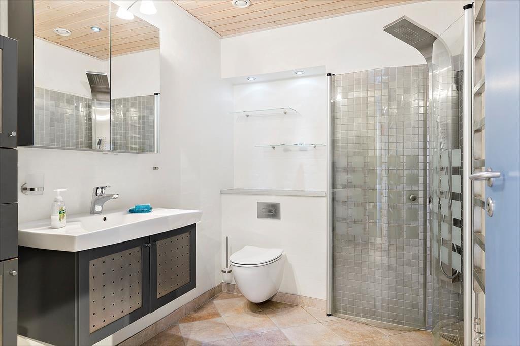 Den attraktive beliggenhed er kun et af mange fortrin ved huset, der er en særdeles rummelig og velbygget feriebolig i to plan. Inden døre har du og dine kære masser af kvadratmeter at brede jer på, og de lyse rum er fyldt med mange lækre detaljer. Hvis du er vild med wellness og varme bade, kan du for eksempel glæde dig over at holde ferie i et hus med et stort spabad – og derudover er der badeværelse med rainshower i stueplan såvel som både bruser og badekar på førstesalens badeværelse. Stueetagens opholdsrum med brændeovn, åbent køkken og østvendt karnap er derudover et oplagt samlingspunkt for familien, men det er nu også fristende at smutte ovenpå for at slappe af i førstesalens stue, der lokker med en imponerende havudsigt. Og hvis I ellers kan løsrive jer fra det smukke vue, kan I se frem til en god nats søvn på husets tre rummelige soveværelser.