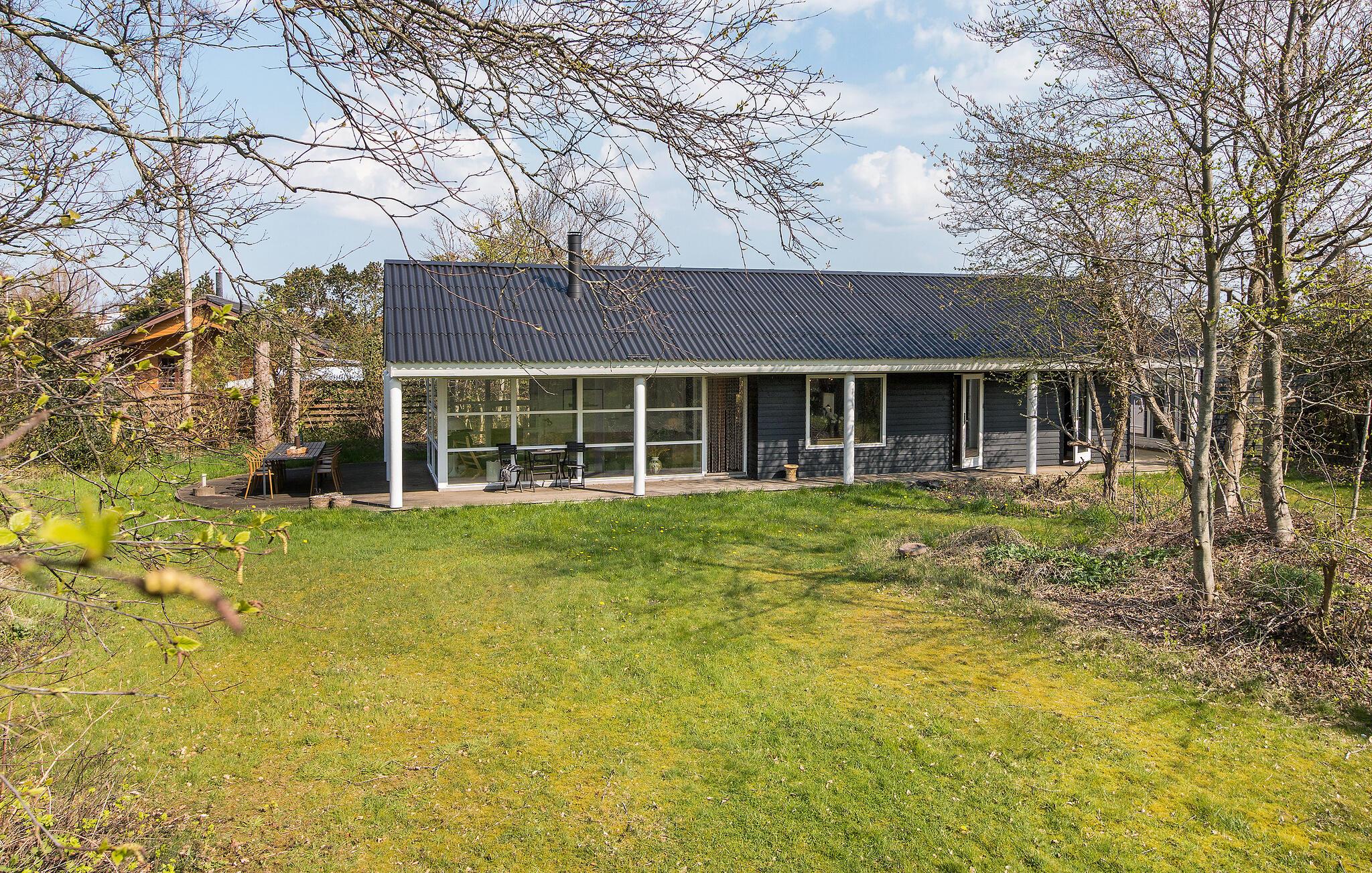 Arkitekttegnet feriehus ved børnevenlig strand i Strandby med skøn have og moderne komfort.