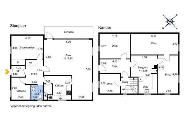 Afstande fra ferieboligen og placering på kort