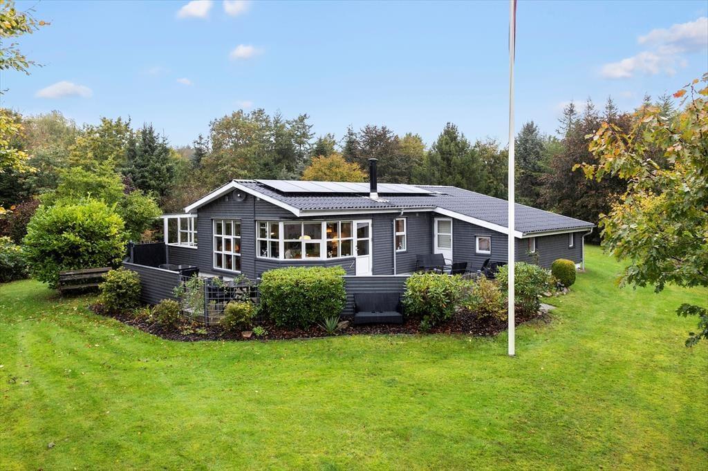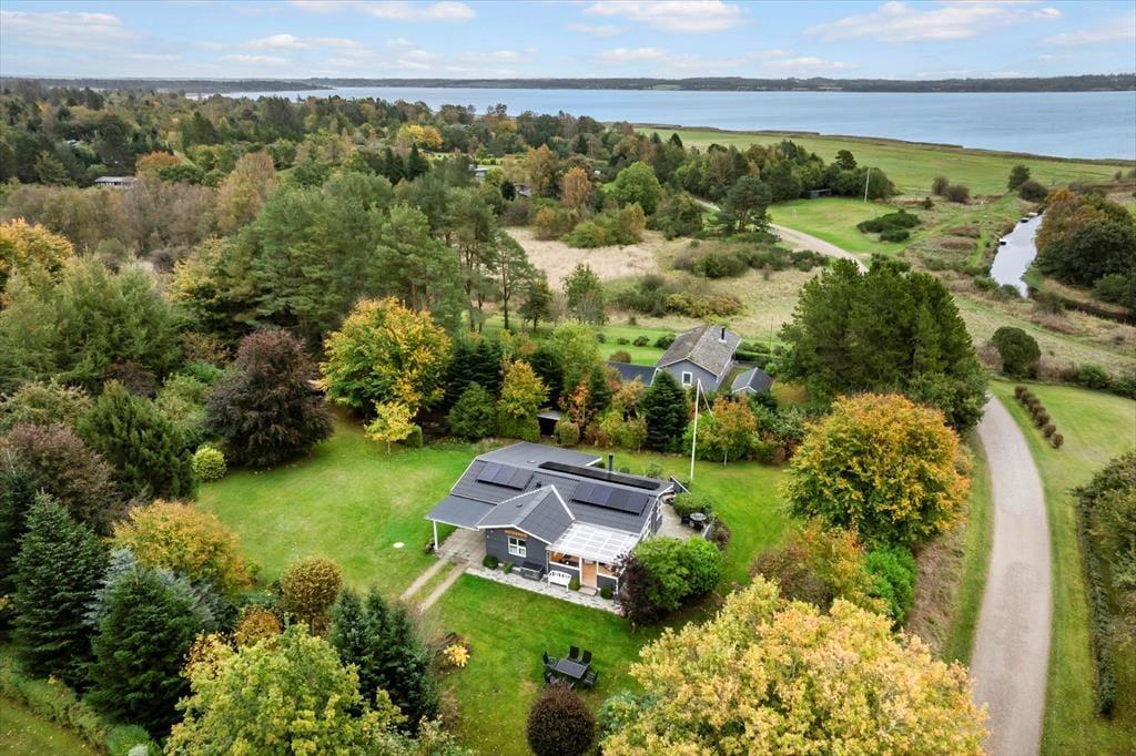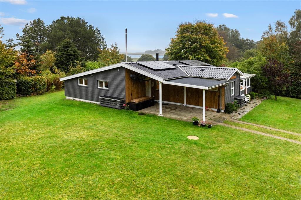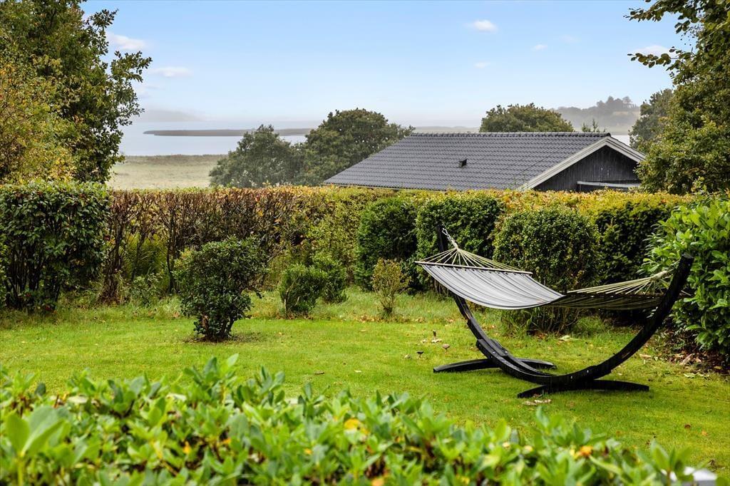 Udelivet kan leves fuldt ud her. Sommerhuset har både en åben og en overdækket terrasse, så du altid kan finde den perfekte plads – uanset om solen står højt, eller du søger lidt skygge. Haven er stor og indbydende, og her kan børnene lege frit på græsset, gynge eller samle pinde til en hyggelig aften ved bålstedet. Det er stedet, hvor hele familien kan samles under åben himmel – måske med snobrød, stjernekig og gode historier i sommernatten. Fra grunden er der desuden en dejlig udsigt til fjorden, som skaber en helt særlig ro, der følger dig gennem ferien.