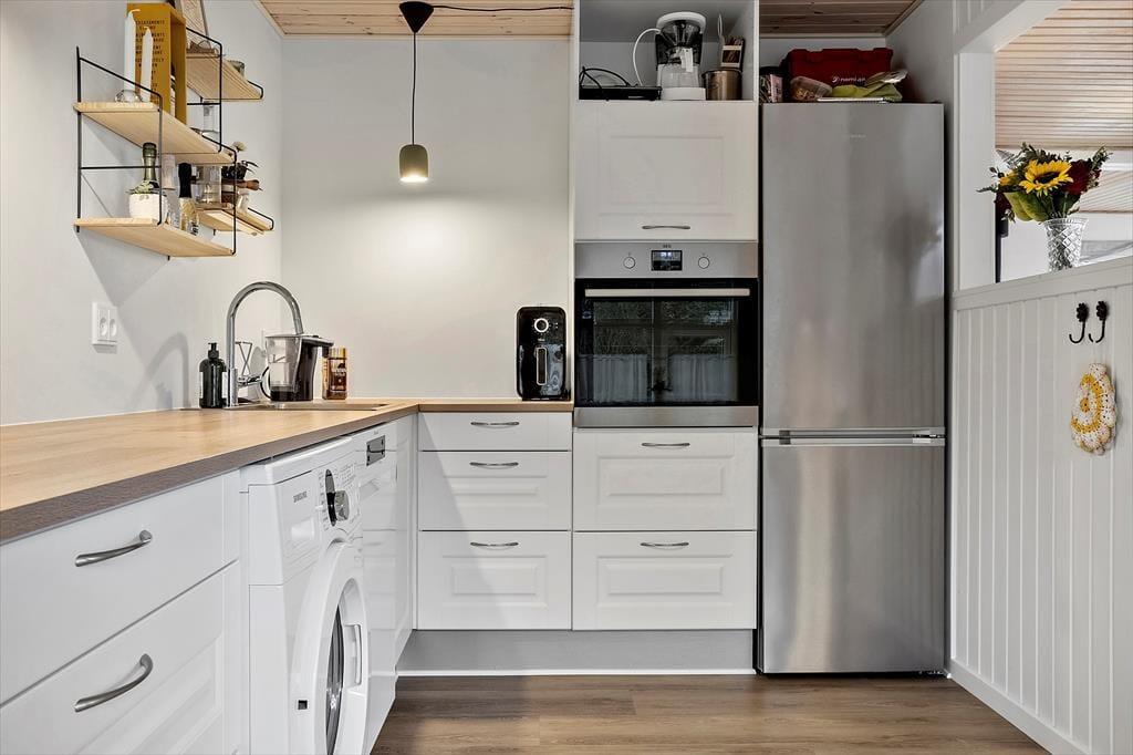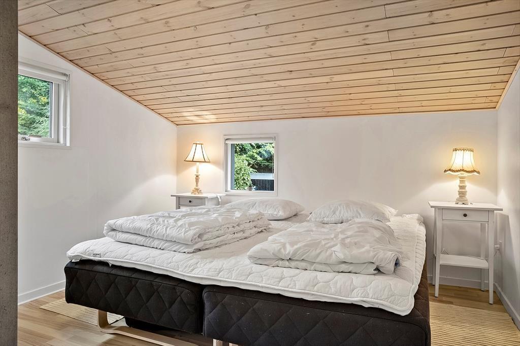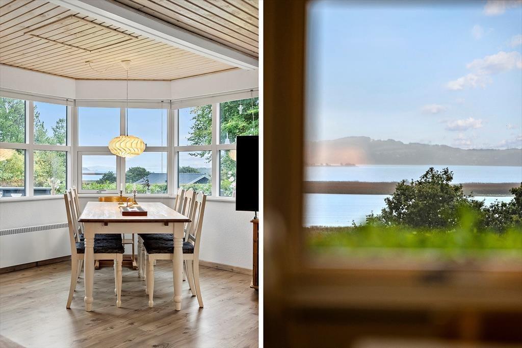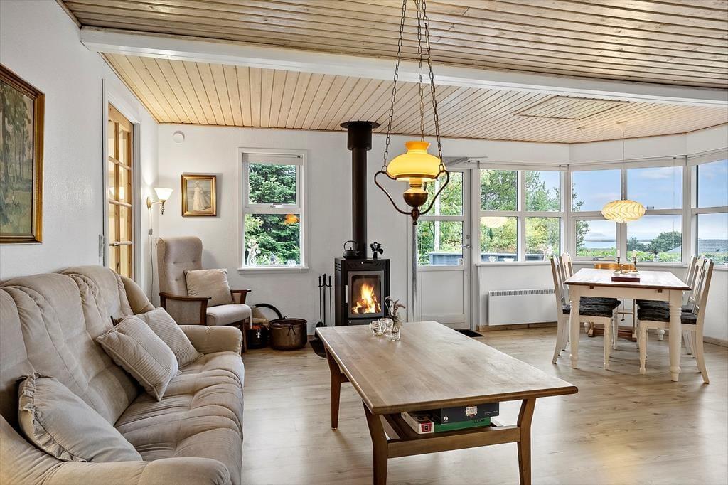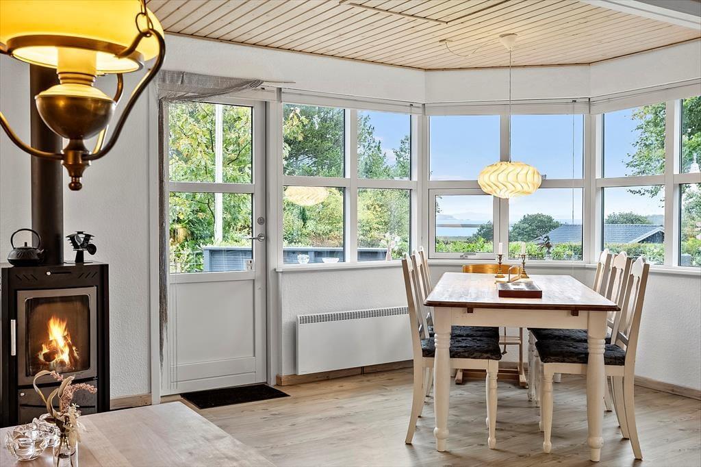 Indenfor mødes du af en varm og hyggelig stemning, hvor indretningen bærer præg af personlighed og charme. De lyse rum skaber en rolig atmosfære, og midt i stuen står brændeovnen klar til at sprede varme og hygge, mens du nyder en stille stund med en god bog eller et brætspil med familien. Her kan du nemt mærke feriepulsen falde, mens ilden knitrer, og lyset fra fjorden strømmer ind gennem vinduerne. Huset rummer god plads til familien med mulighed for både fælles samvær og små pauser hver for sig – præcis som en ferie skal være.